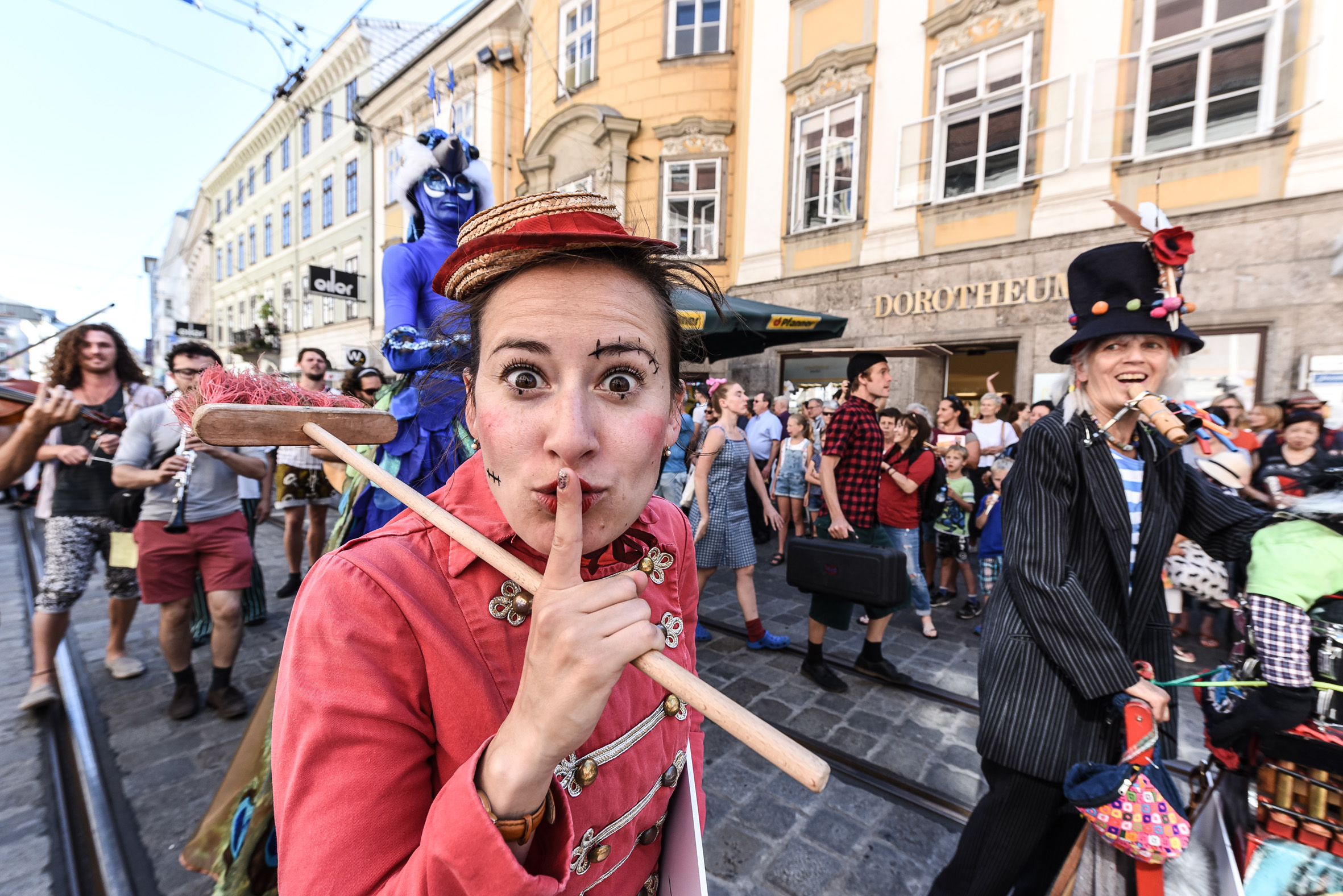 Am Donnerstag um 16 Uhr läutet der bunte Festzug aller Künstler durch die Landstraße das Festival ein. Startpunkt der Parade ist am OK Platz, am Hauptplatz endet sie mit dem Startschuss für das Spektakel.