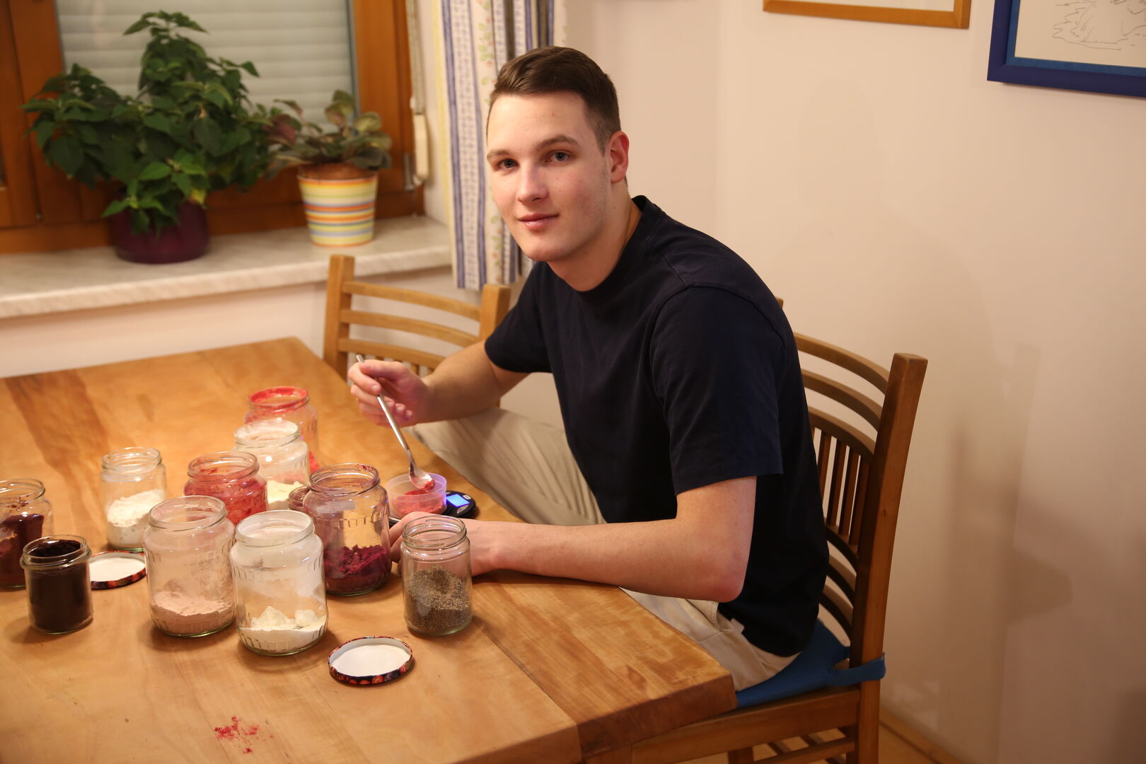 Clemens Kräter: Nein, Anlagen für die Gefriertrocknung sind relativ teuer. Ich habe verschiedene Fruchtpulver bestellt, mehrere Wochen lang Pulver zusammengemixt und Liste geführt. Es war eine Tüftelei, bis ich drei Sorten entworfen hatte, die geschmacklich top sind, weil es schon auf 0,5 Gramm mehr oder weniger ankommt.