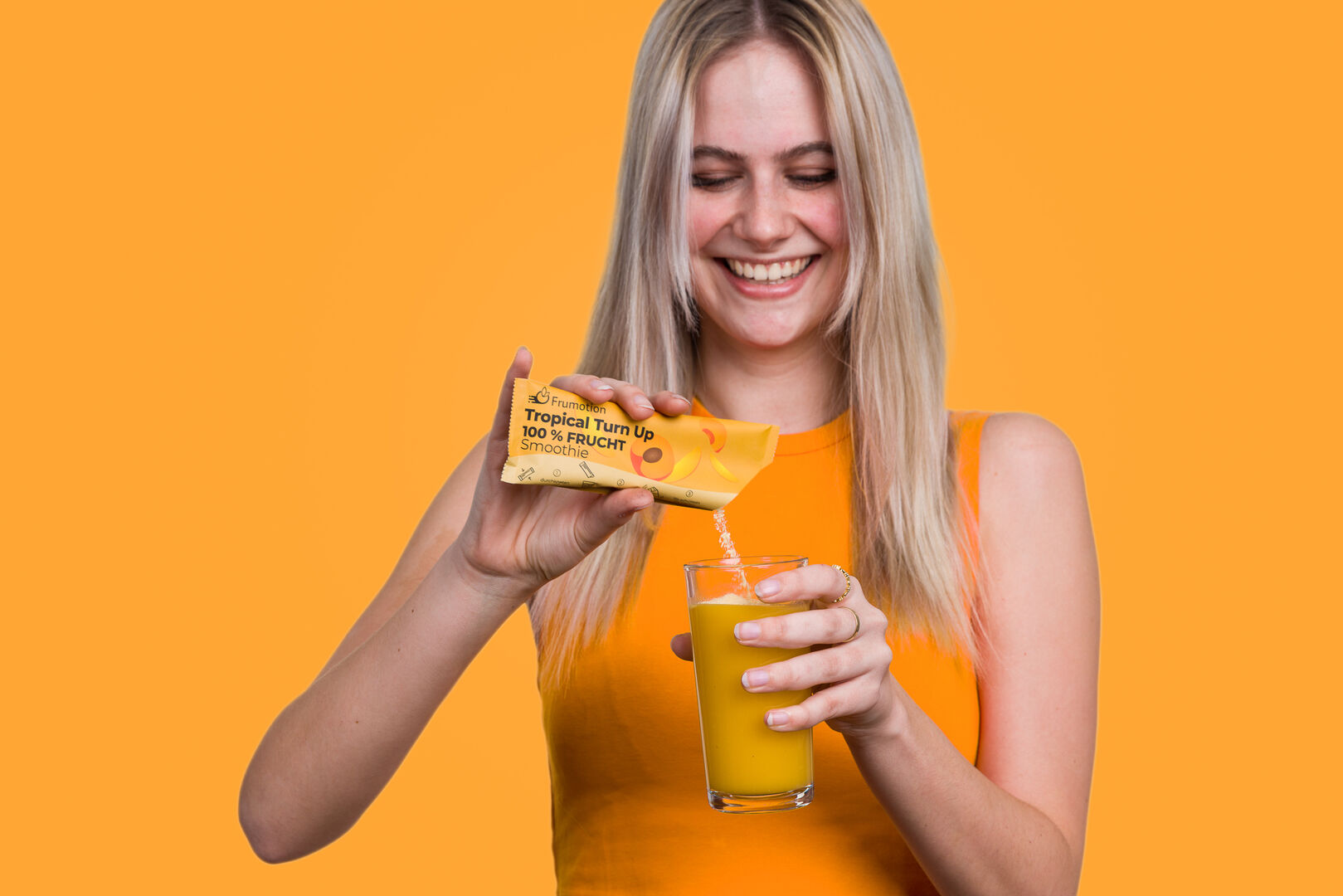 Clemens Kräter: Ja, es gibt Produkte, in denen unter anderem Fruchtpulver enthalten ist, aber nie zu 100 Prozent. Meine Instant Smoothies enthalten keine anderen Zusätze, in einem Smoothie Stick stecken mehr als 130 Gramm Früchte und 45 Prozent weniger Zucker als in herkömmlichen Smoothies. Denn der einzige Zucker, der bei Frumotion enthalten ist, ist der von der Frucht selbst.