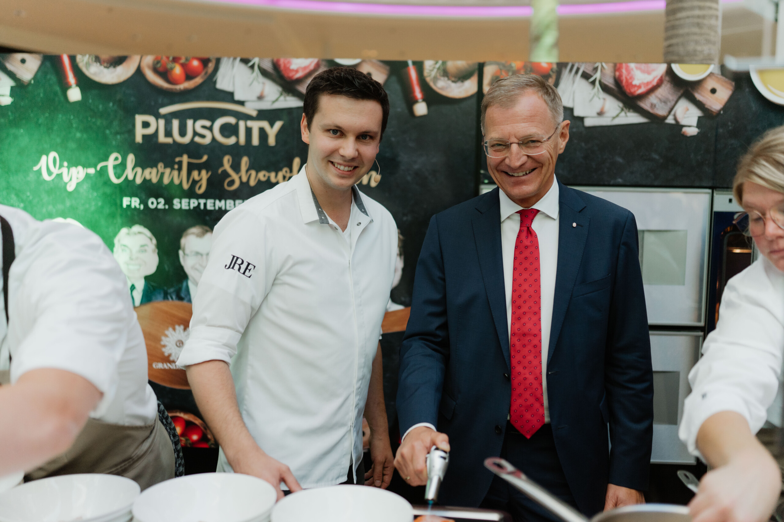 Beim VIP Charity Showkochen schwang Landeshauptmann Thomas Stelzer gemeinsam mit dem oberösterreichischen Koch-Talent des Jahres, Lukas Kienbauer, den Kochlöffel. 35.000 Euro kamen für den guten Zweck zusammen.