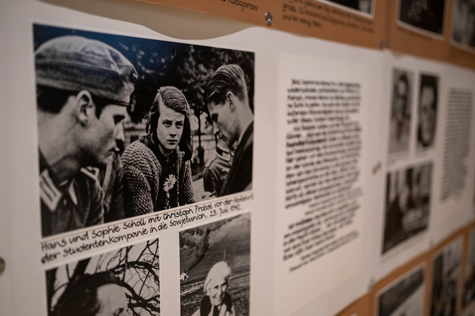 Die internationale Ausstellung zeigt Bilder und Texte zur politischen Situation der „Zwischenkriegszeit“ in der Weimarer Republik und zu den Jahren des Dritten Reichs. Im Zentrum stehen die Aktivitäen der Widerstandsbewegung „Weiße Rose“, zu deren innerem Kreis unter anderem die Geschwister Hans und Sophie Scholl gehörten.