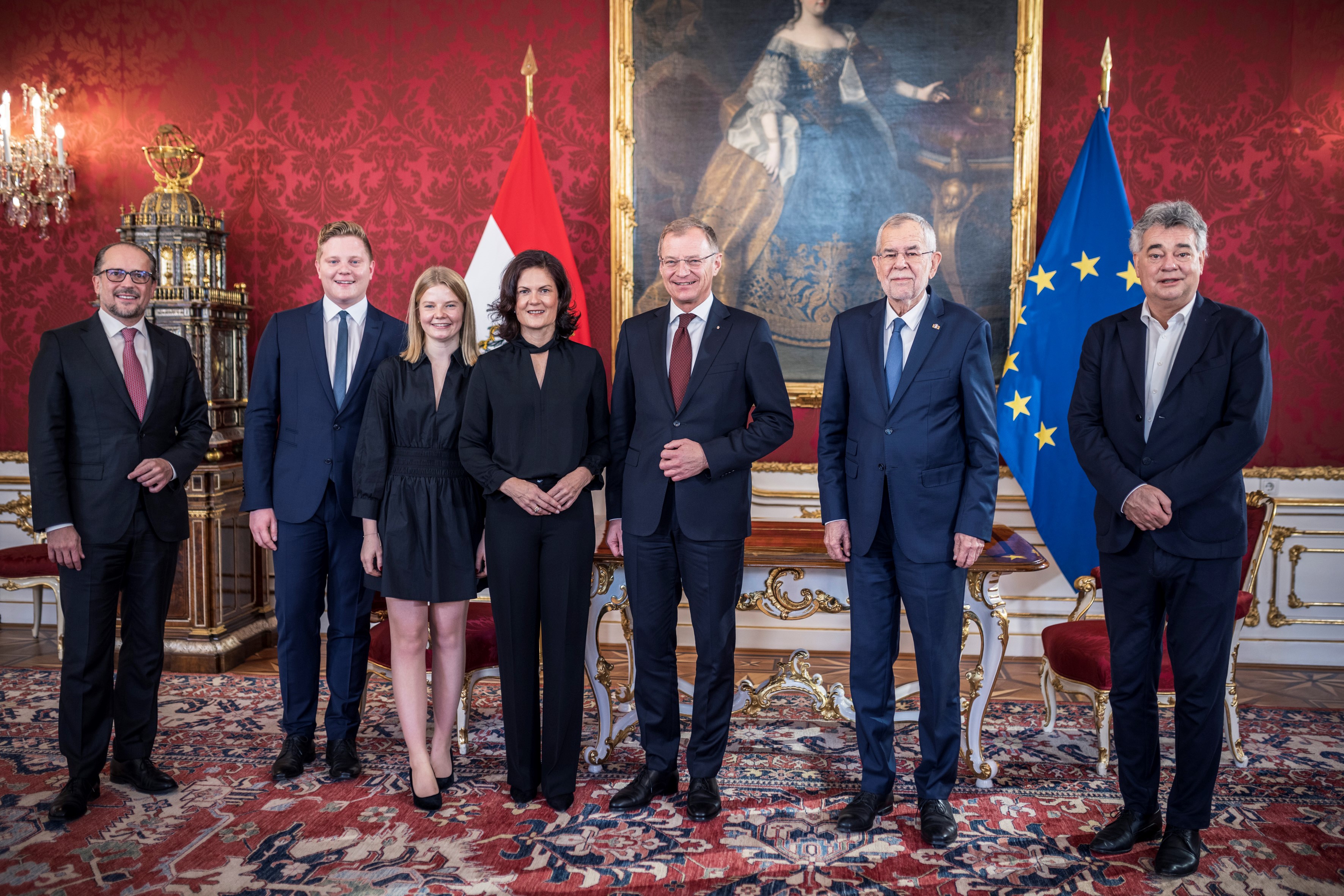 Landeshauptmann Stelzer war in Begleitung seiner Familie - mit Ehefrau Bettina und seinen beiden Kindern Tochter Lena und Sohn Lukas - in die Wiener Hofburg gekommen. Auch Bundeskanzler Alexander Schallenberg und Vizekanzler Werner Kogler wohnten der Angelobung bei.