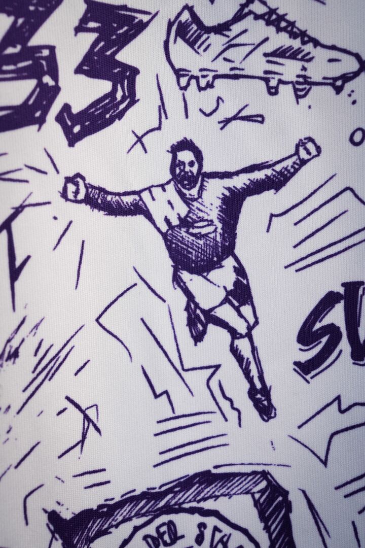 Für das Design verantwortlich: Tattoo-Künstler Markus „Balu“ Linher, selbst Austria-Fan und tief in der Szene verwurzelt. Er hat Motive aus der violetten Kurve ins Trikotdesign übersetzt, Formen, Symbole und Anspielungen, die normalerweise unter der Haut getragen werden, zieren jetzt das Textil.