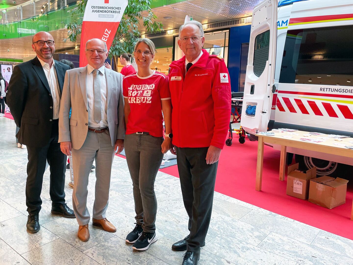 Beim 10. Erste-Hilfe-Landeswettbewerb des Jugendrotkreuzes im Salzburger Europapark stellten 120 Schüler von 14 Schulen aus dem gesamten Bundesland ihr Können eindrucksvoll unter Beweis. Unzählige Besucher des Einkaufszentrums konnten die Rettungskräfte von morgen dabei beobachten, wie sie an sechs Stationen mit ihrem Erste-Hilfe-Wissen brillieren und dadurch realistische Erste-Hilfe-Szenarien meistern mussten: von einer Reanimation einer Schwimmerin nach einem Badeunfall bis hin zur Erstversorgung einer Judokämpferin, die auf der Matte Krampfanfall erlitten hatte, sowie einer Mountainbikerin, die von einem Auto erfasst wurde.