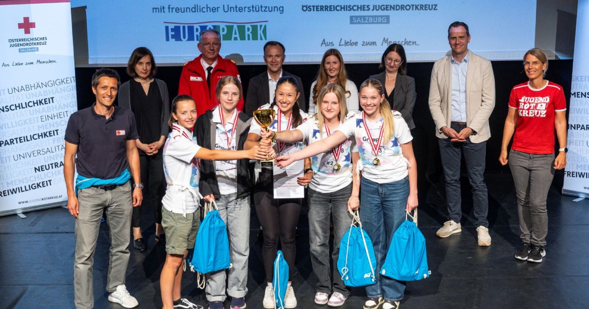 Als Siegerteam in der Schwierigkeitskategorie "Gold“ ging schlussendlich "Rescue Anne’s“ des BG und SRG Saalfelden (Pinzgau) hervor. In der Kategorie "Silber“ triumphierte "m&m I“ des MS Mariapfarr (Lungau). Beide Teams wurden nicht nur mit einem Siegerpokal belohnt, sondern ihnen wird darüber hinaus die Ehre zuteil, ihr Bundesland beim Erste-Hilfe-Bundeswettbewerb in Laubegg (Steiermark) vertreten zu dürfen.