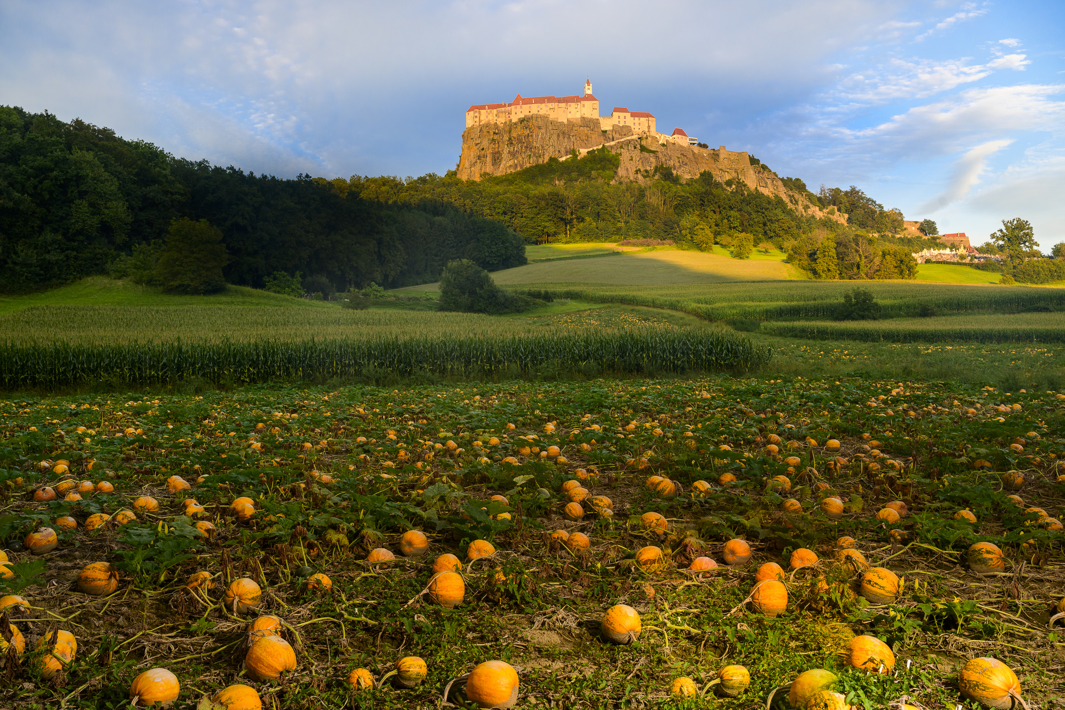 Ein besonders beliebter Klettersteig für Anfänger ist auch der „Leopold“ Klettersteig an der Riegersburg. Umgeben von den sanften Hügeln der Südsteiermark klettert man etwa 40 Minuten an der Südwestwand des vulkanischen Gesteinsbrockens hinauf. Der Steig ist 190 Meter lang und mündet direkt in den Gastgarten der Burgtaverne. Für diejenigen, die dann erst so richtig auf den Geschmack gekommen sind, gibt es dann noch die Möglichkeit auf eine Verlängerung der Route um den neuen Heinrich-Klettersteig, der der Schwierigkeitsstufe C/D zuzuweisen ist.