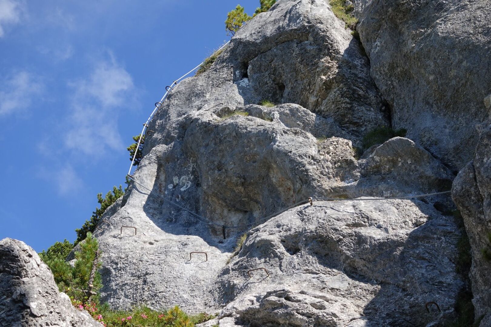 Wer schon ein bisschen Erfahrung gesammelt hat und sich mehr zutraut, der kann den Klettersteig „Gamsblick“ im steirischen Salzkammergut versuchen. Er verspricht ein einzigartiges Gipfelpanorama. Ausgehend von der Tauplitzalm geht es auf der gestuften östlichen Wand hinauf auf die Traweng (1.981 Meter). Für den Klettersteig benötigt man ca. 1 Stunde, für den Zustieg ist ebenfalls etwa 1 Stunde zu rechnen. Die Aussicht reicht vom Toten Gebirge und den Grimming bis hin zum Dachstein.