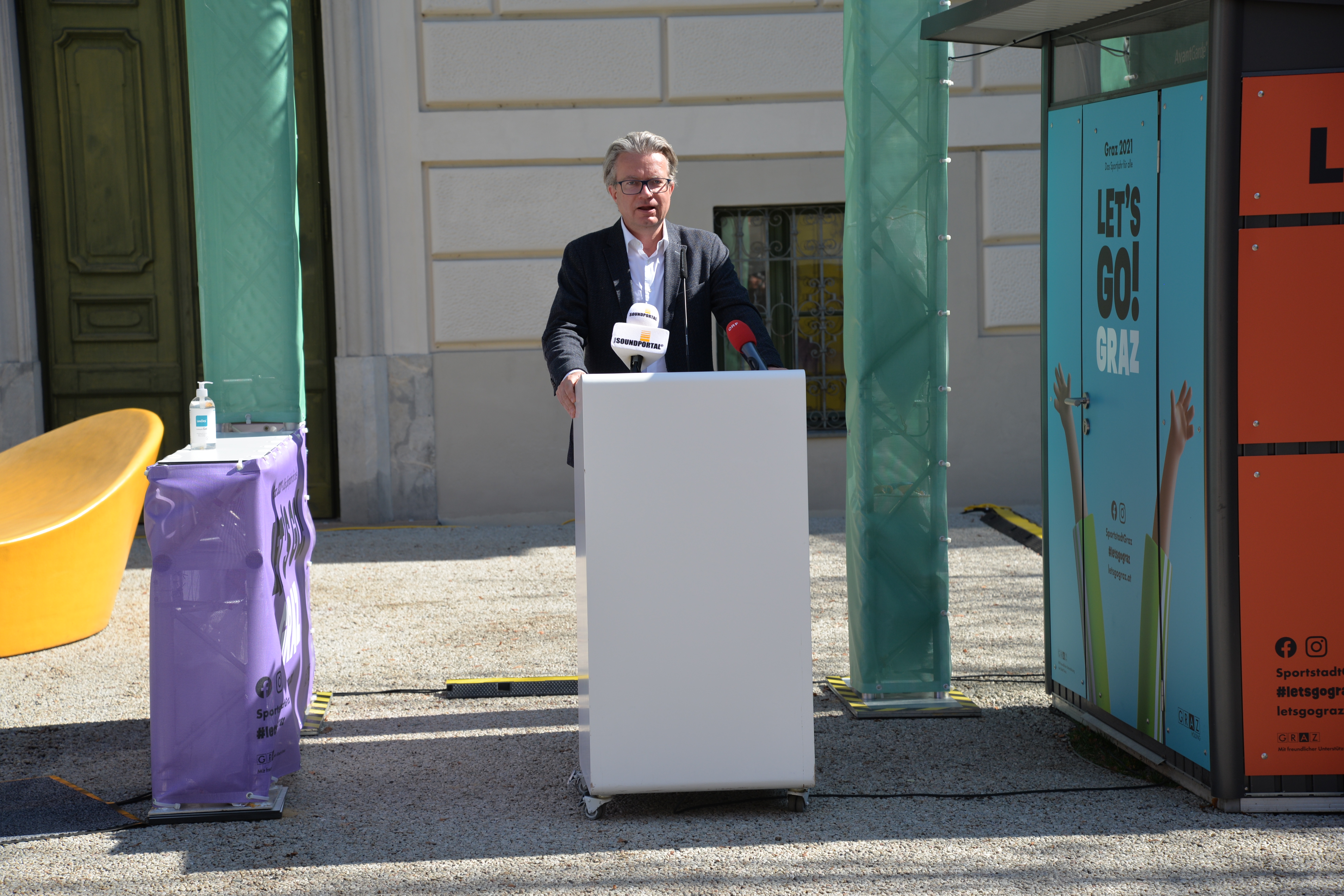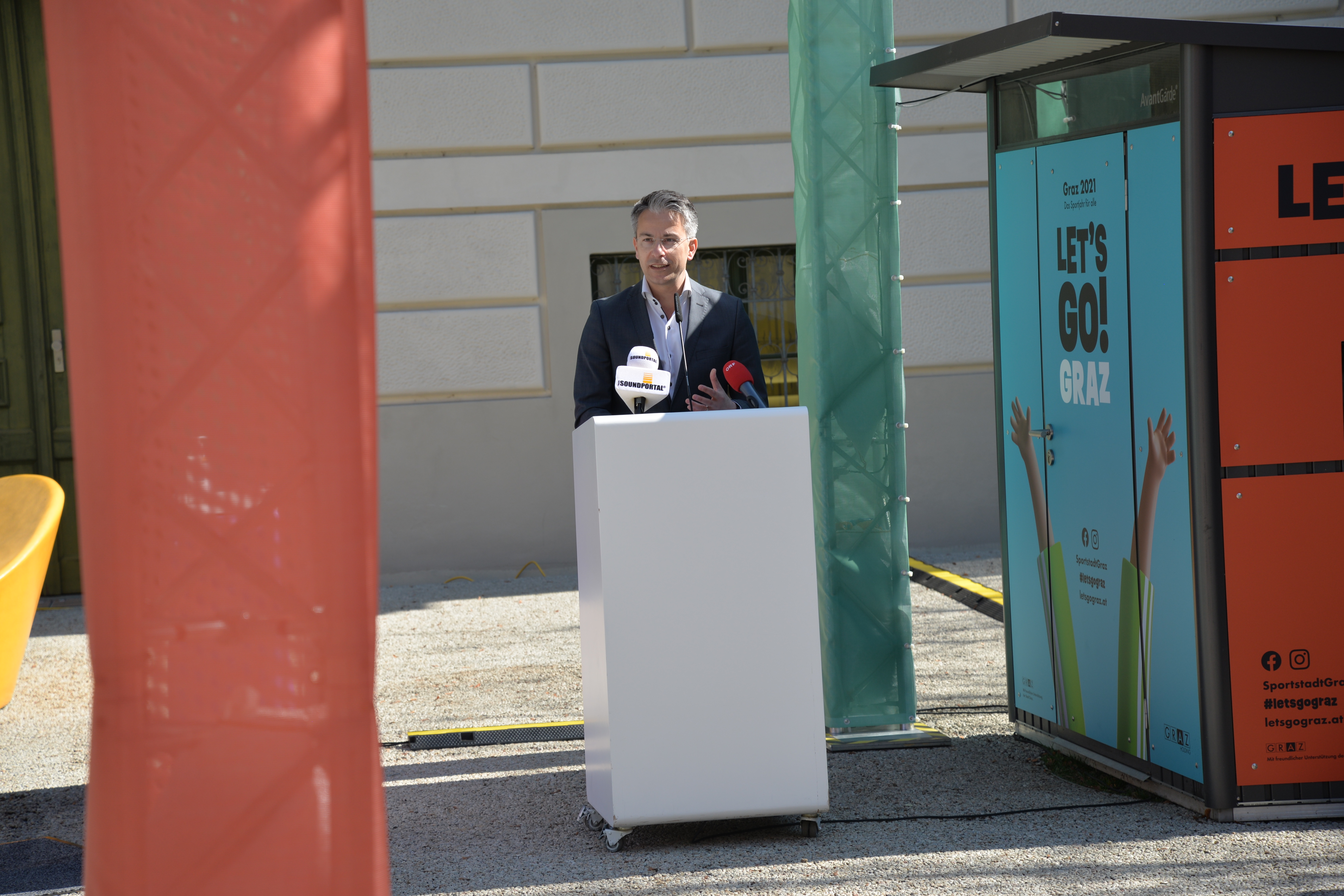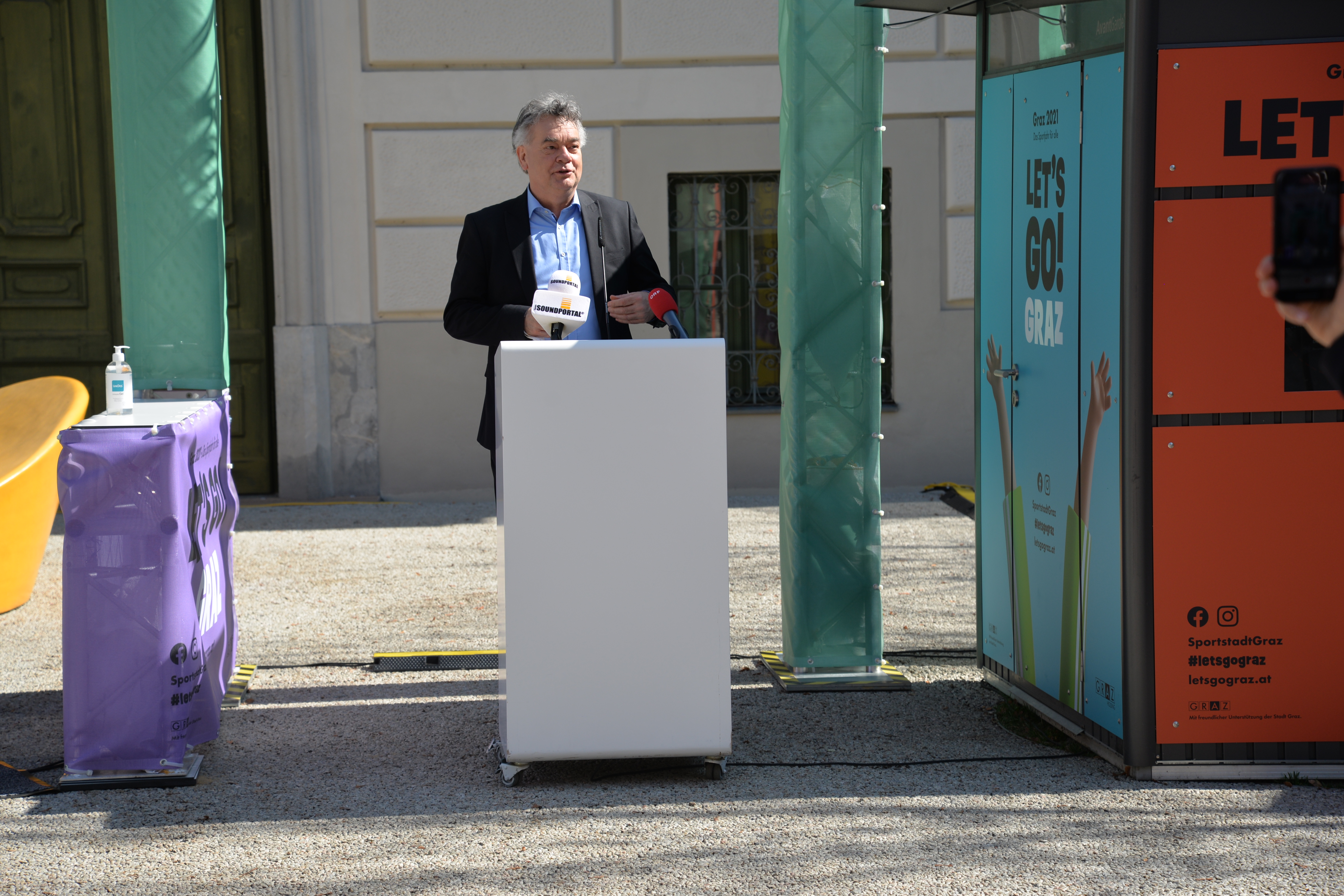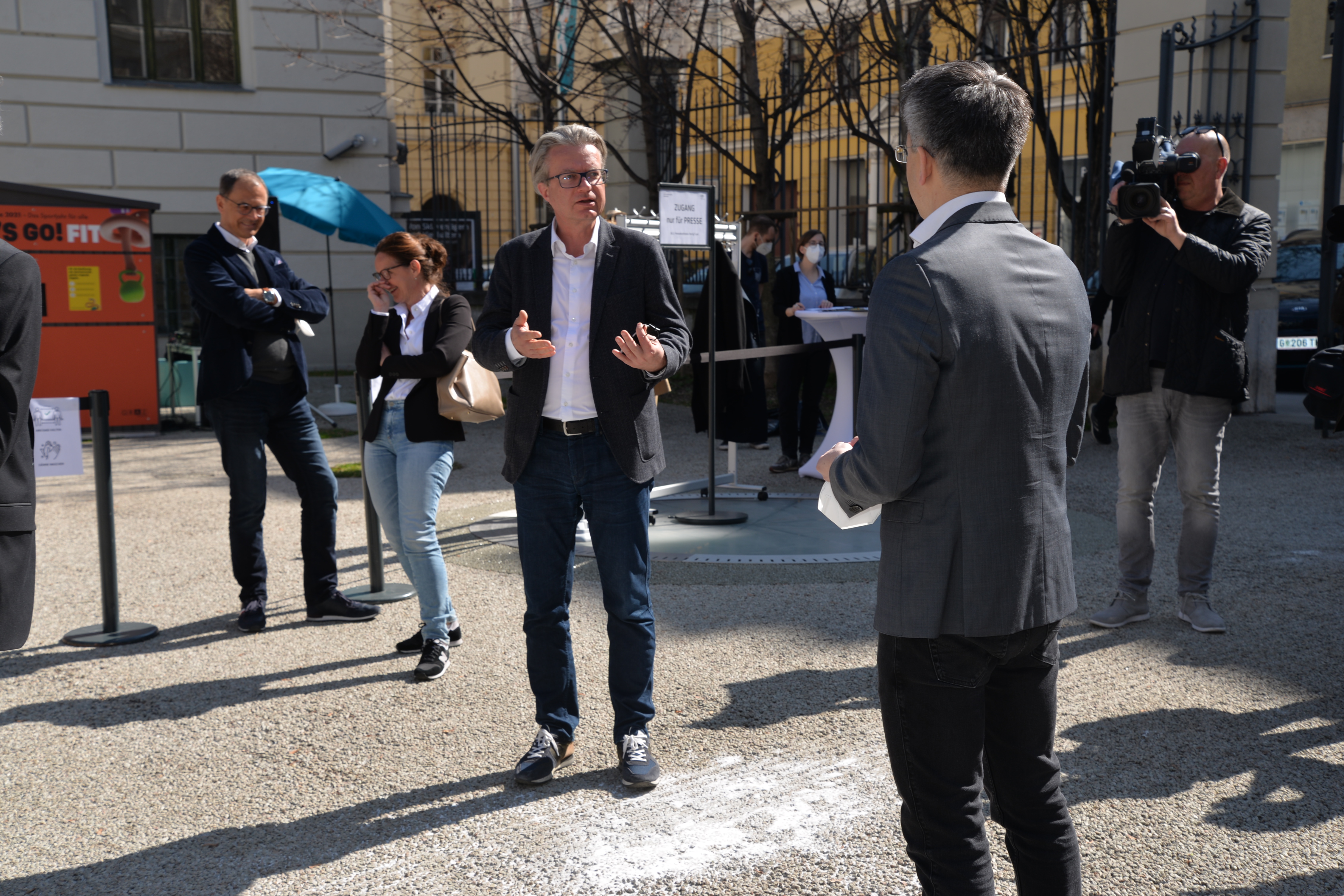 Die Ausstellung wurde heute, am 26. März 2021, von Vizekanzler und Minister für Kunst, Kultur, öffentlichen Dienst und Sport Werner Kogler, Kultur- und Sportlandesrat Christopher Drexler, Sportstadtrat Kurt Hohensinner und dem Geschäftsführer und Intendant des Frida & freD Kindermuseums Jörg Ehtreiber eröffnet. Auch Stadträtin Judith Schwentner nahm teil. „Die Sportausstellung Fertig? Los! im CoSA führt Kultur und Sport auf besondere Weise zusammen. In einer Zeit, in der leider auch im Sport noch viele Einschränkungen bestehen, ist es umso erfreulicher, dass in der Sportausstellung nicht nur Wissen und Informationen vermittelt werden, sondern Besucherinnen und Besucher auch auf vielseitige Art und Weise zur aktiven Bewegung eingeladen werden“, erklärt Landesrat Drexler. Auch Stadtrat Kurt Hohensinner zeigt sich begeistert: „Die Ausstellung zeigt eindrucksvoll die enge Verbundenheit der beiden Bereiche, von der technischen Entwicklung von Sportgeräten über Leistungs- und Zeitmessung bis hin zu Rundfunk und Sportübertragungen. Ganz nach dem Motto des Sportjahres lädt die Schau darüber hinaus ein, auch selbst aktiv zu werden.“ Vizekanzler Werner Kogler betont, wie wichtig die Möglichkeiten für Sport und kulturellen Genuss auch momentan sind: „Gerade in Zeiten großer Einschränkungen wird uns schmerzlich bewusst, dass zu einem erfüllten freudvollen Leben mehr gehört als nur die Deckung unserer Grundbedürfnisse. Soziale Interaktionen beispielsweise, kultureller Genuss wie etwa ein Ausstellungsbesuch, aber ganz besonders auch Sport, passiv wie aktiv.“