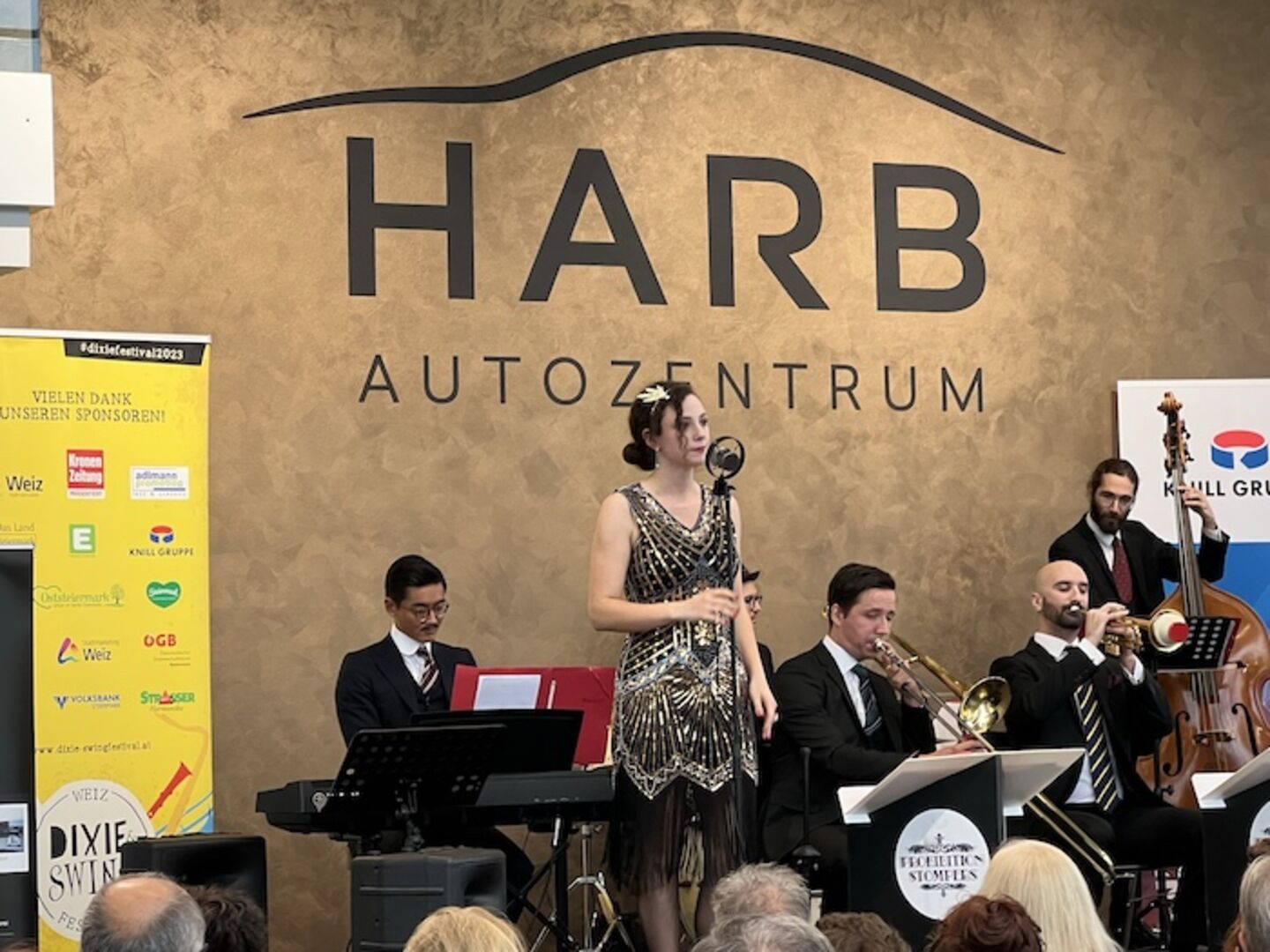 Für gute Stimmung und ausgezeichnete Musik am Abend sorgte die Jazzband „Prohibition Stompers“ mit Unterstützung von Sängerin Tanja Filipovic. Dieser besondere Auftritt fand in Zusammenarbeit mit dem 7. Internationalem Dixie- und Swingfestival statt, das heuer von 9. bis 13. August 2023 in Weiz und umliegenden Region stattfindet. Auch für das leibliche Wohl war gesorgt: Herwig’s Cafe Central aus Sankt Ruprecht an der Raab lieferte kulinarische Köstlichkeiten und der Weinhof Loder-Taucher die dazu passenden Weine.