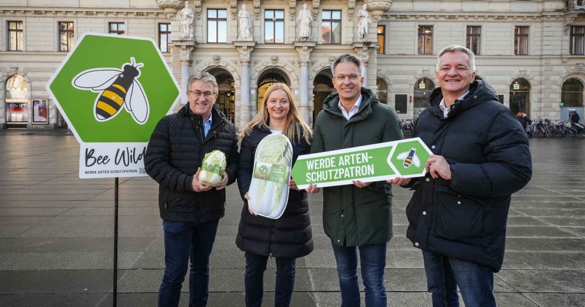 Noch mehr Platz für Bienen wird dank des BeeWild 10:1-Modell bei einem Acker im Süden von Graz geschaffen. Hierbei werden Bienenweiden mit heimischen Wildpflanzen im Verhältnis 10:1 zu den Produktionsflächen angelegt. Auf zehn Hektar Anbaufläche wird also ein Hektar Naturparadies für Fauna und Flora geschaffen. Best-Practice-Beispiele gibt es bereits in Niederösterreich. "Damit fördern wir die nachhaltige Bewirtschaftung, vernetzen Ökosysteme und sichern Lebensräume für viele Tierarten – ein Gewinn für die Natur und uns Menschen gleichermaßen", so Manfred Hohensinner, Initiator von BeeWild. So gibt es schon einige Produkte aus der artenschutzgerechten Landwirtschaft wie Kartoffel oder Äpfel. Ganz neu ist auch der BeeWild-Chinakohl, der ab sofort in allen steirischen Spar-Märkten erhältlich ist.