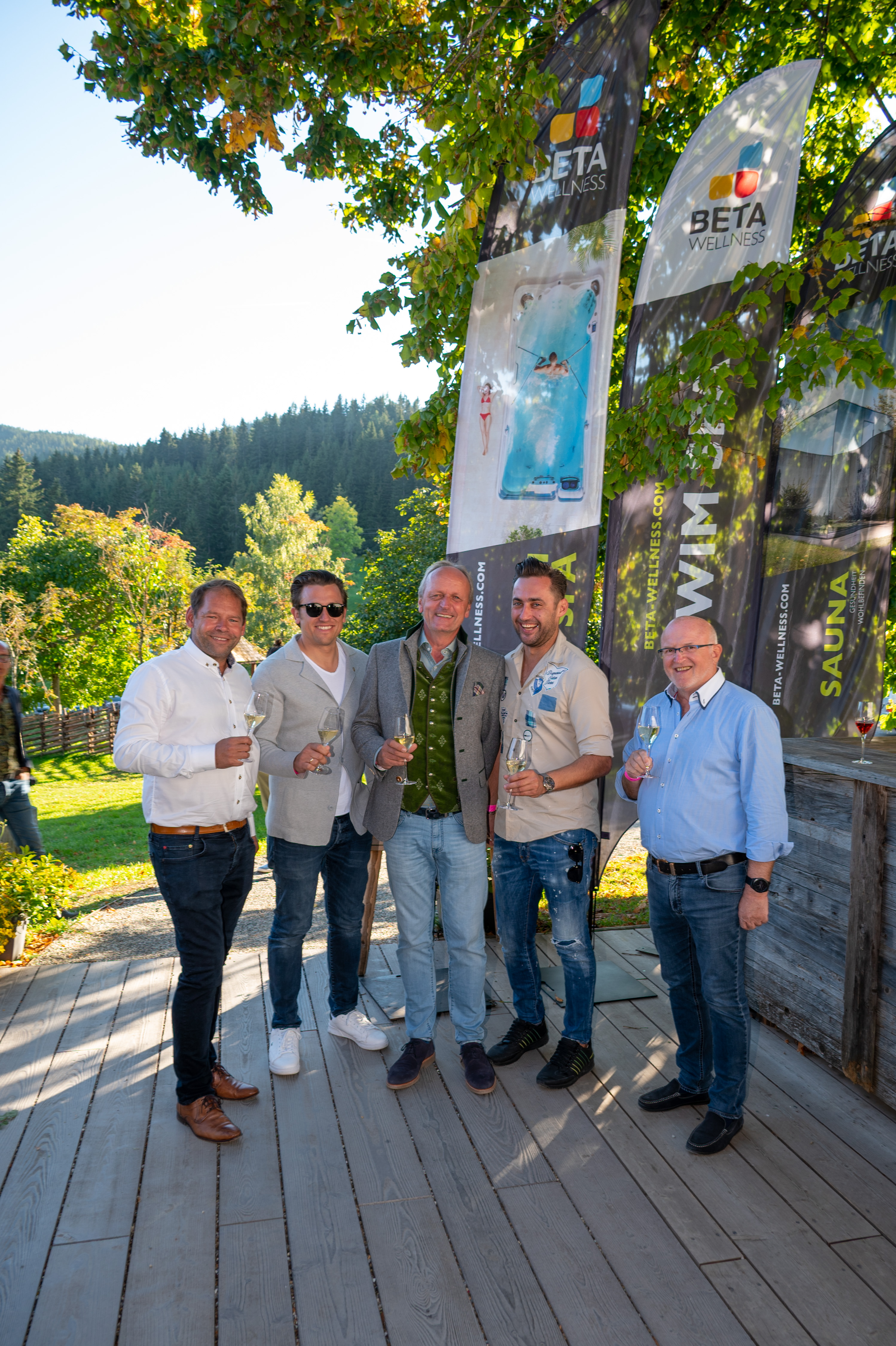 (v. l.) Markus Geyeregger (CEO Beta Wellness), Philipp Schörghofer, Michaela Kirchgasser, Michael Konsel, Stefan Koubek.