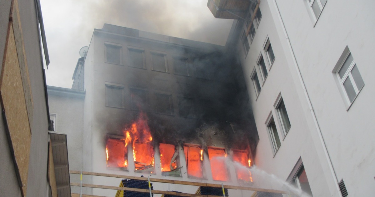 In einem Gründerzeit-Gebäude, das gerade umgebaut wird, war es zu einem Brandausbruch gekommen. Beim Eintreffen erkannten die Einsatzkräfte, dass sich der Brand durch Flammenschlag bereits vom 3. auf das 4. Obergeschoss ausgebreitet hatte. Aufgrund der Decken- und Bodenkonstruktionen in Holzbauweise kam es zusätzlich zu einem Durchbrand nach unten in das zweite Obergeschoss. Alle Baustellenarbeiter hatten das Objekt bereits verlassen – keine Person wurde verletzt. Um 10.54 Uhr konnte Brand aus gegeben werden. Einsatzleiter Andreas Schmuck: „Die betroffenen Geschosse konnten wegen akuter Ein- und Absturzgefahr nur teilweise betreten werden. Der Löscheinsatz wurde dadurch erheblich erschwert!“