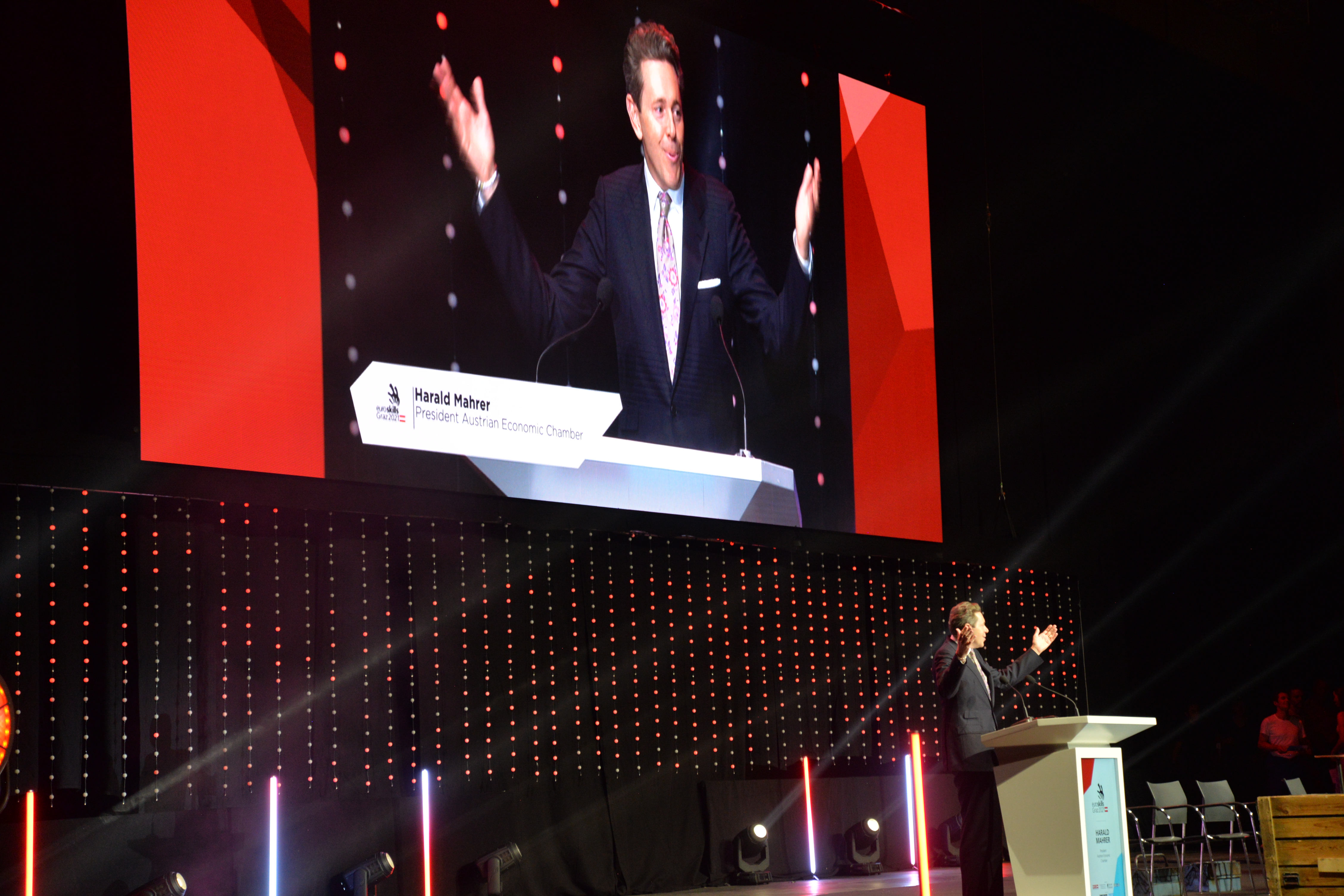 Die große Eröffnung fand am 22. September in der Grazer Stadthalle statt. Neben Einschaltungen von Bundespräsident Alexander Van der Bellen und dem EU-Kommissar für Beschäftigung, Soziales und Integration Nicolas Schmit, sprachen WorldSkills-Präsidentin Dita Traidas und der Präsident der Österreichischen Wirtschaftskammer Harald Mahr auf der Bühne über die besondere Bedeutung des Bewerbs und die große Freude, ihn nach zweimaliger Verschiebung nun endlich abhalten zu dürfen.