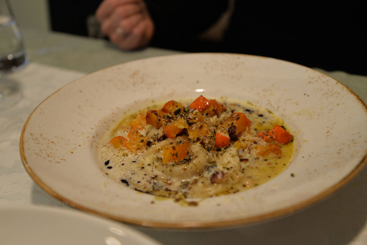 Die Weinkarte – mit Wein von regionalen Winzern – sowie die Speisekarte mit zahlreichen Gerichten, von traditionell bis vegan, lassen keine leichte Entscheidung zu: Man möchte am liebsten alles probieren! Vom „Gruß aus der Küche“ über die Vorspeise, der Hauptspeise bis zum Dessert wird ein liebevoll dekorierter Teller serviert. Und was auf den ersten Anblick begeisterte, enttäuschte auch den Gaumen nicht.