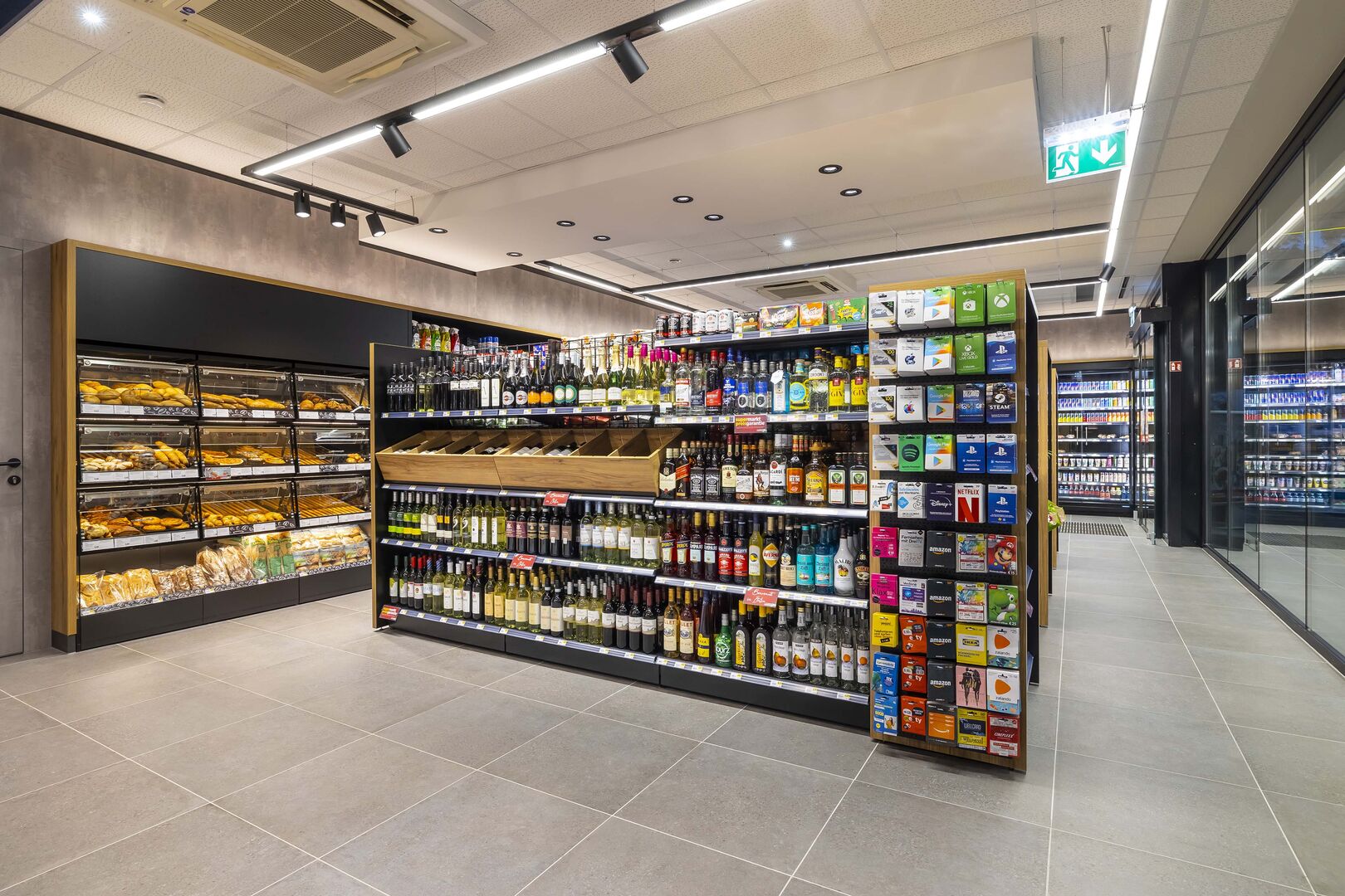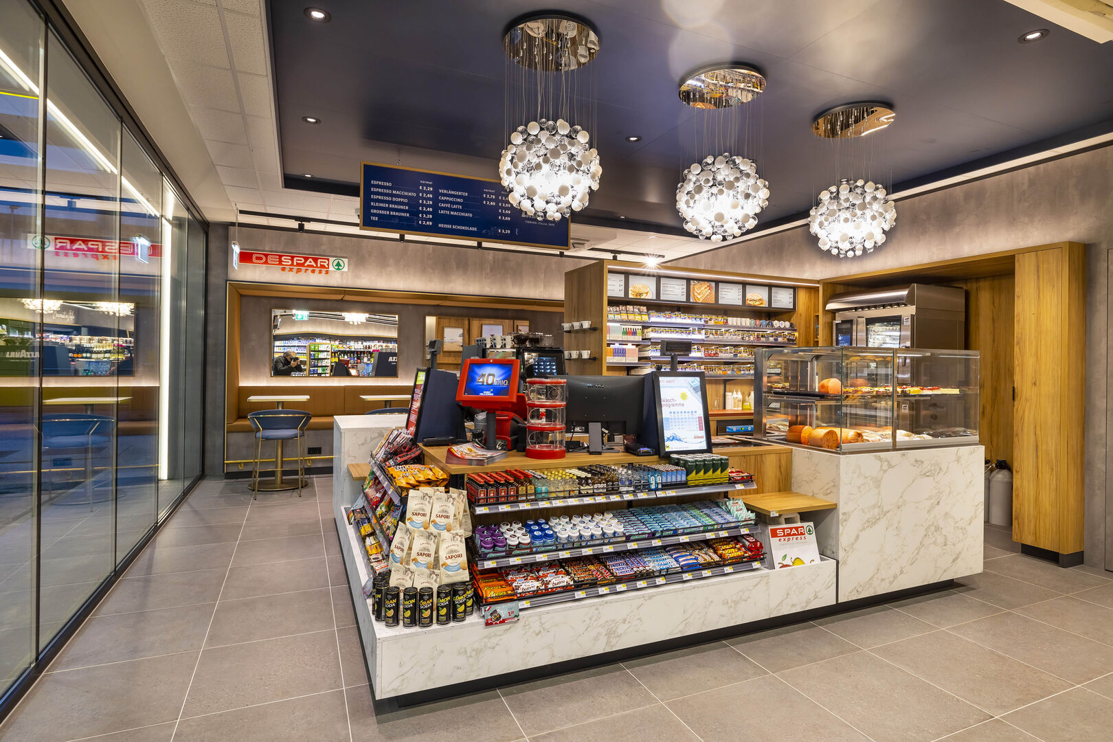 Die neuen DESPAR express-Tankstellenshops zeichnen sich durch helles Holz und freundliches, modern-urbanes Design aus. Das Interior lädt durch die entspannte Atmosphäre neben dem Tanken und Einkaufen auch zum Verweilen für eine kleine Mahlzeit oder auf einen schnellen Kaffee ein.