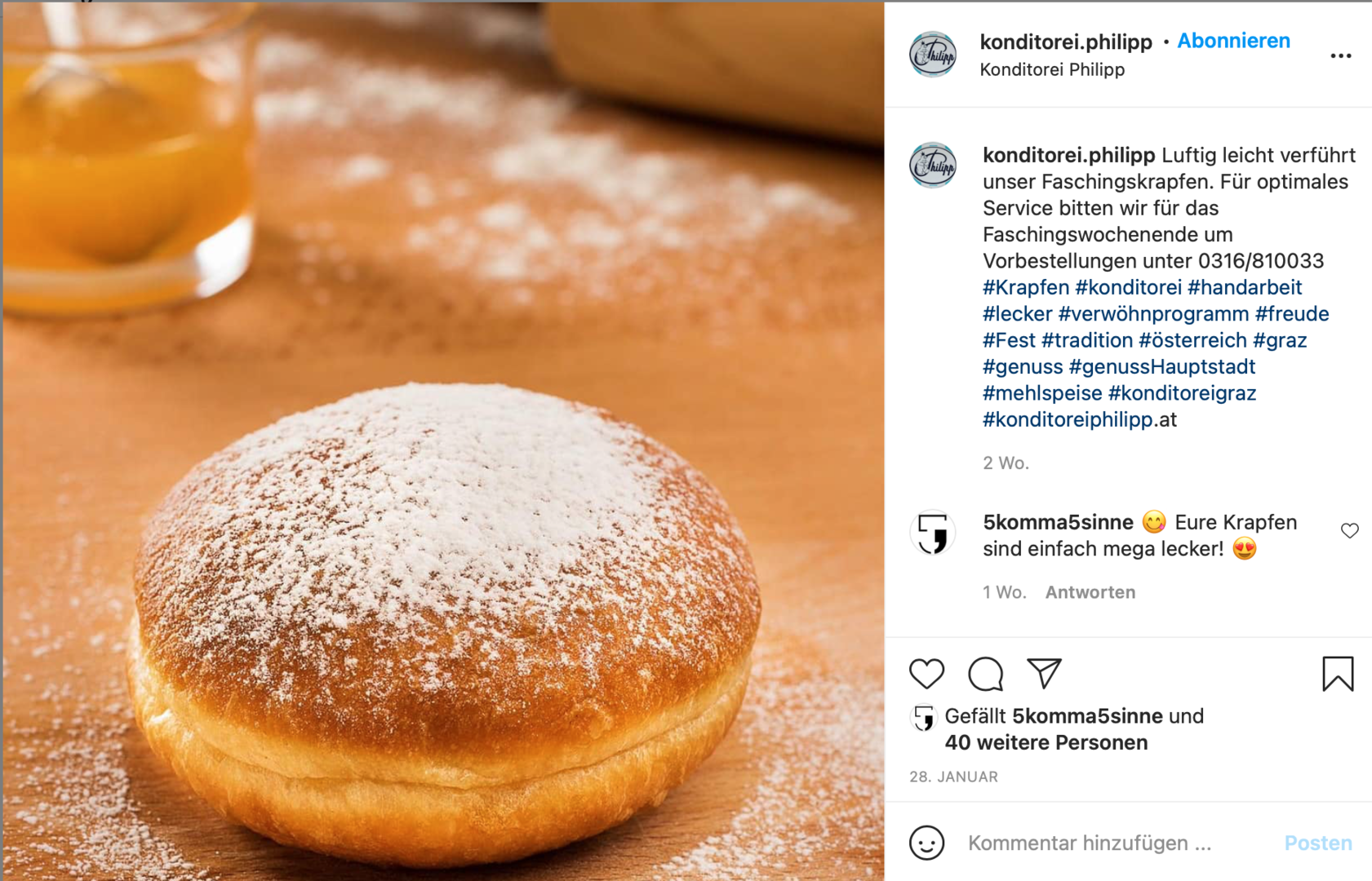 Überzeugen konnte uns ebenfalls der Krapfen der Traditionskonditorei Philipp. Leicht und fluffiger Teig, süße Marmelade und eine schöne Optik - das schmeckt einfach gut.