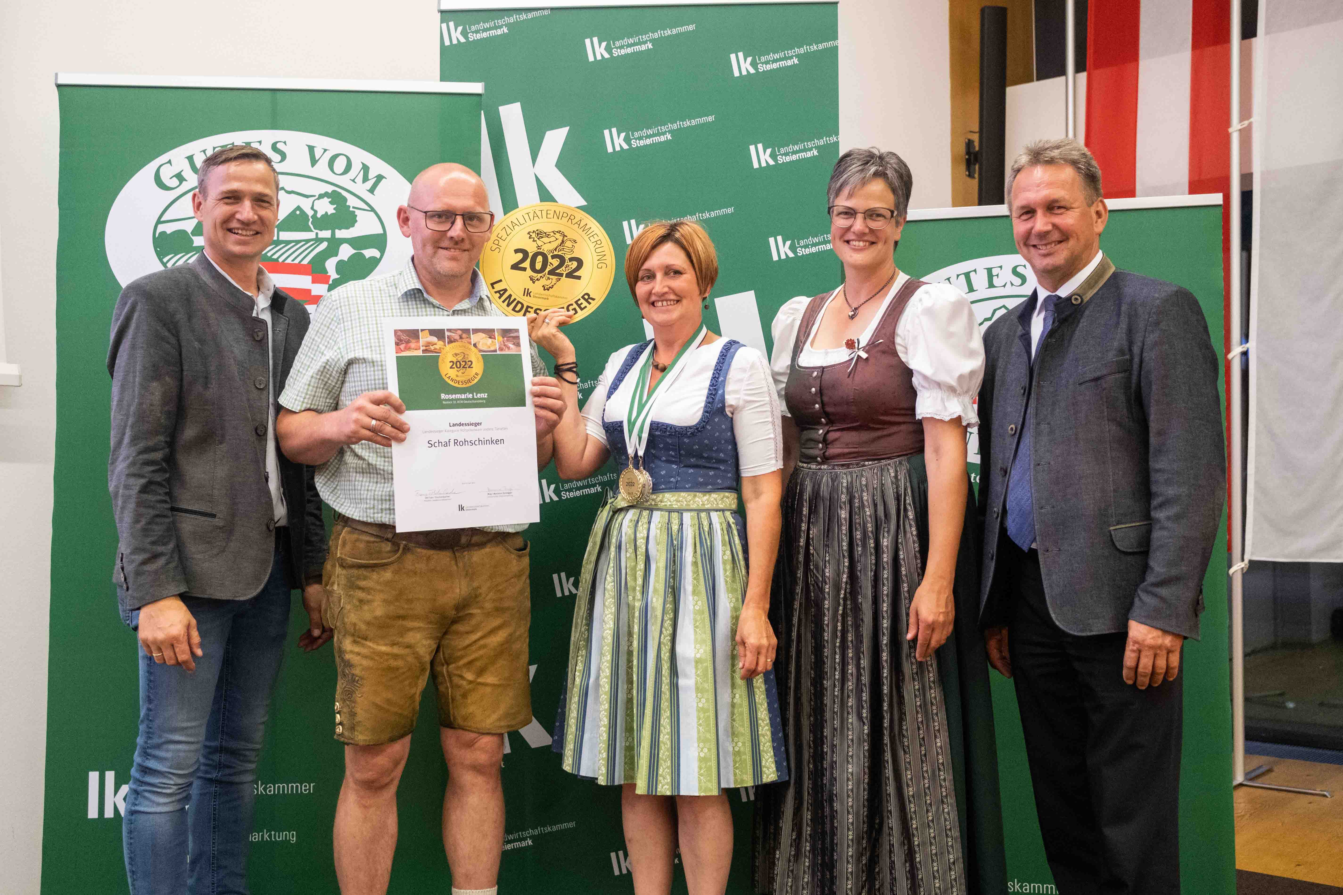 - Und noch einen Start-Ziel-Sieg gab es bei der Spezialitäten-Prämierung 2022: Rosemarie Lenz vom Lämmerhof Lenz aus Deutschlandsberg triumphierte mit ihrem Rohschinken vom Schaf. Auf ihrem Tierwohlbetrieb setzt sie auch auf bestes Weidefutter mit vielen Kräuter- und Gewürzpflanzen.