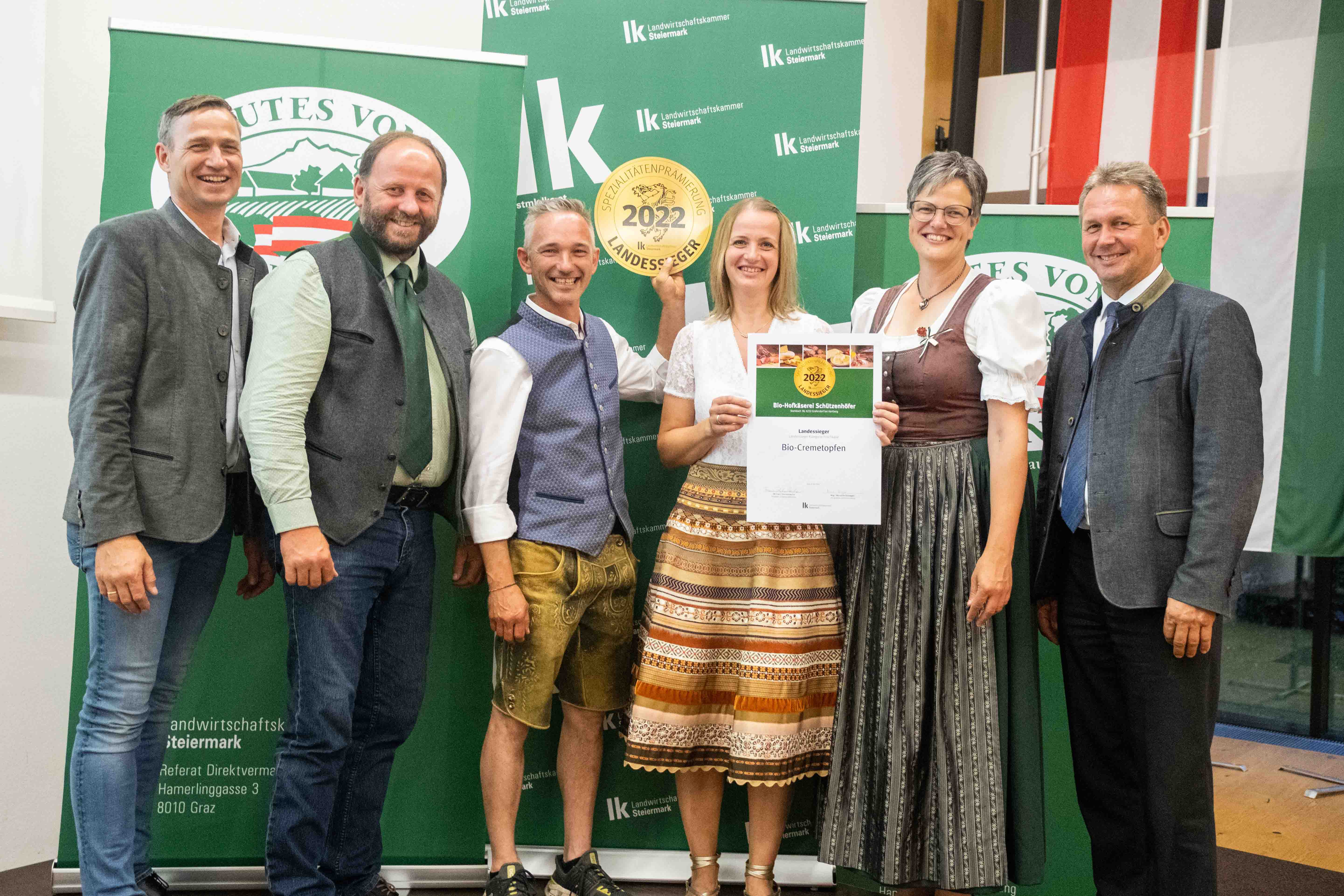 - Markus Schützenhöfer, Inhaber der Bio-Hofkäserei Schützenhöfer, erreichte mit seinem Bio-Cremetopfen einen Landessieg.