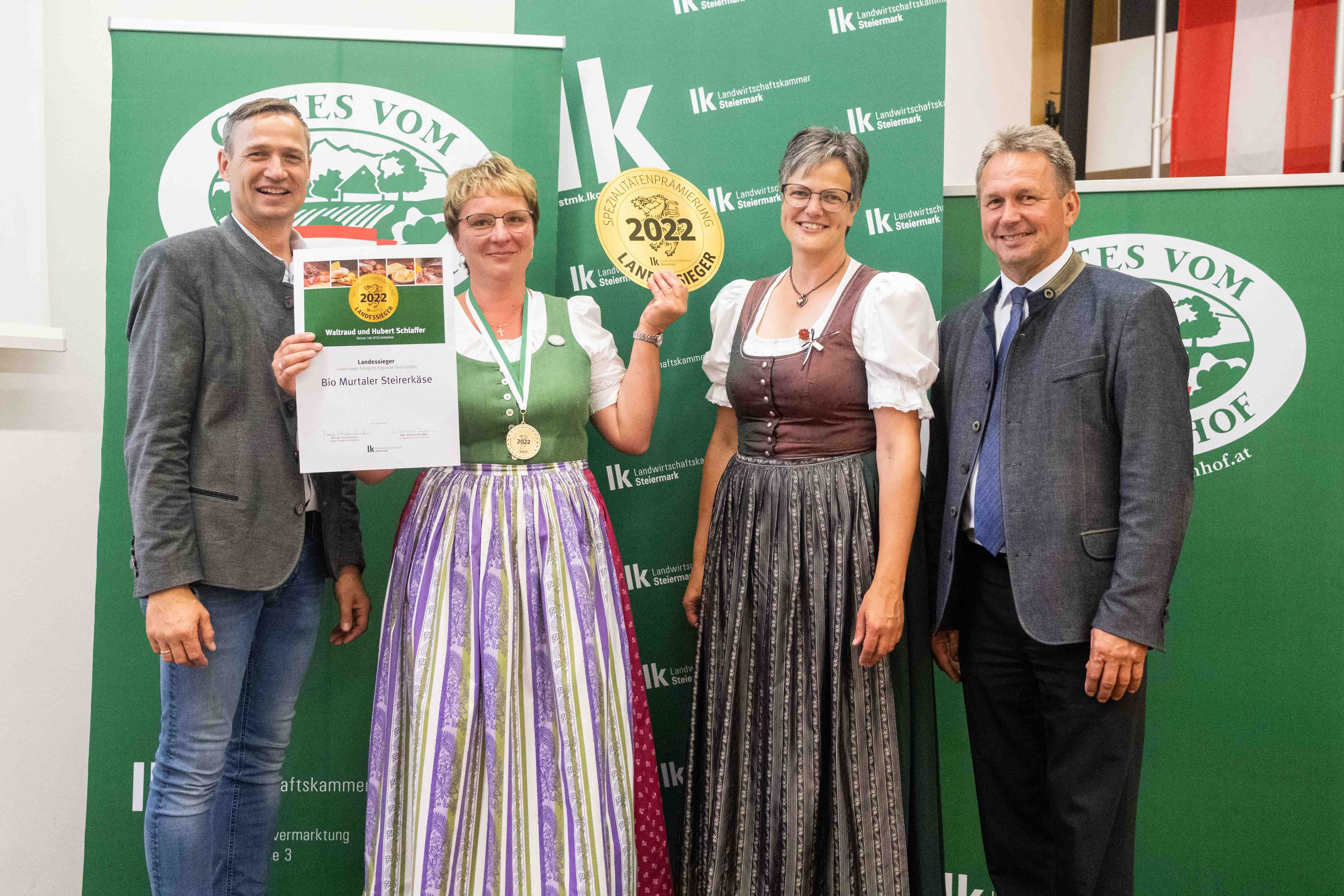 - Einen Landessieg gibt es auch für Waltraud und Hubert Schlaffer aus Knittelfeld für ihren Bio-Murtaler-Steirerkäse, dem beliebten und traditionsreichen Käse aus dem Murtal.