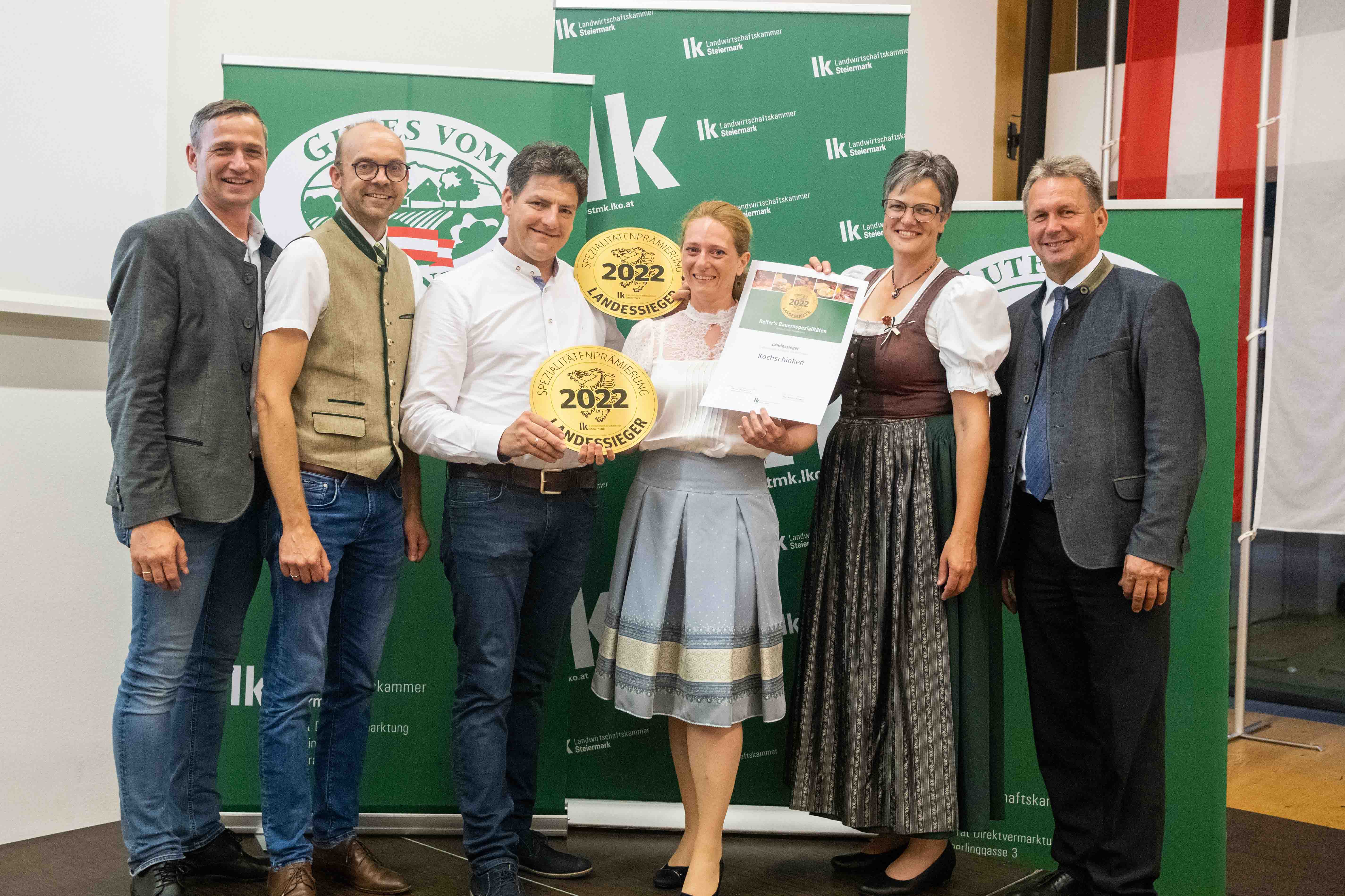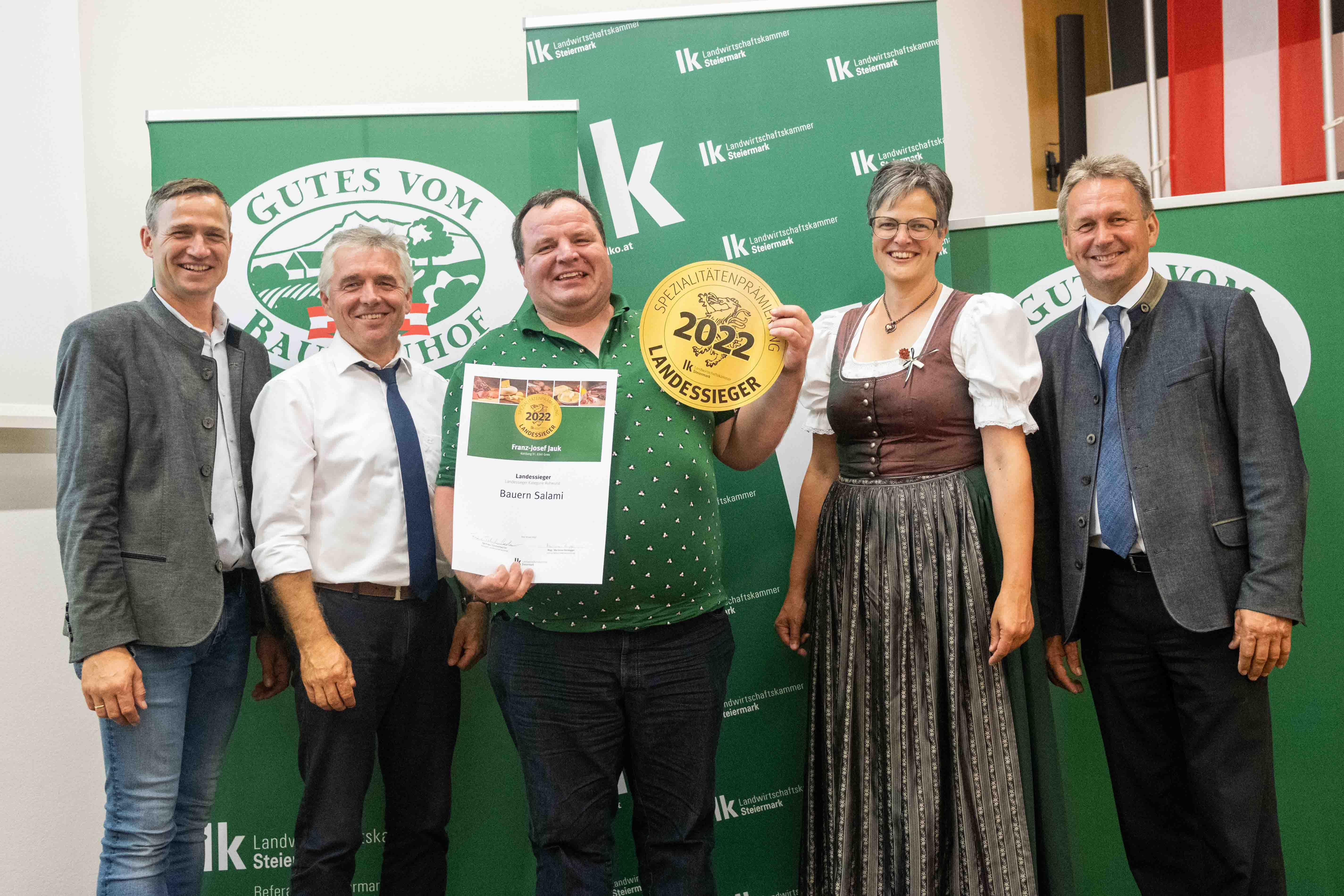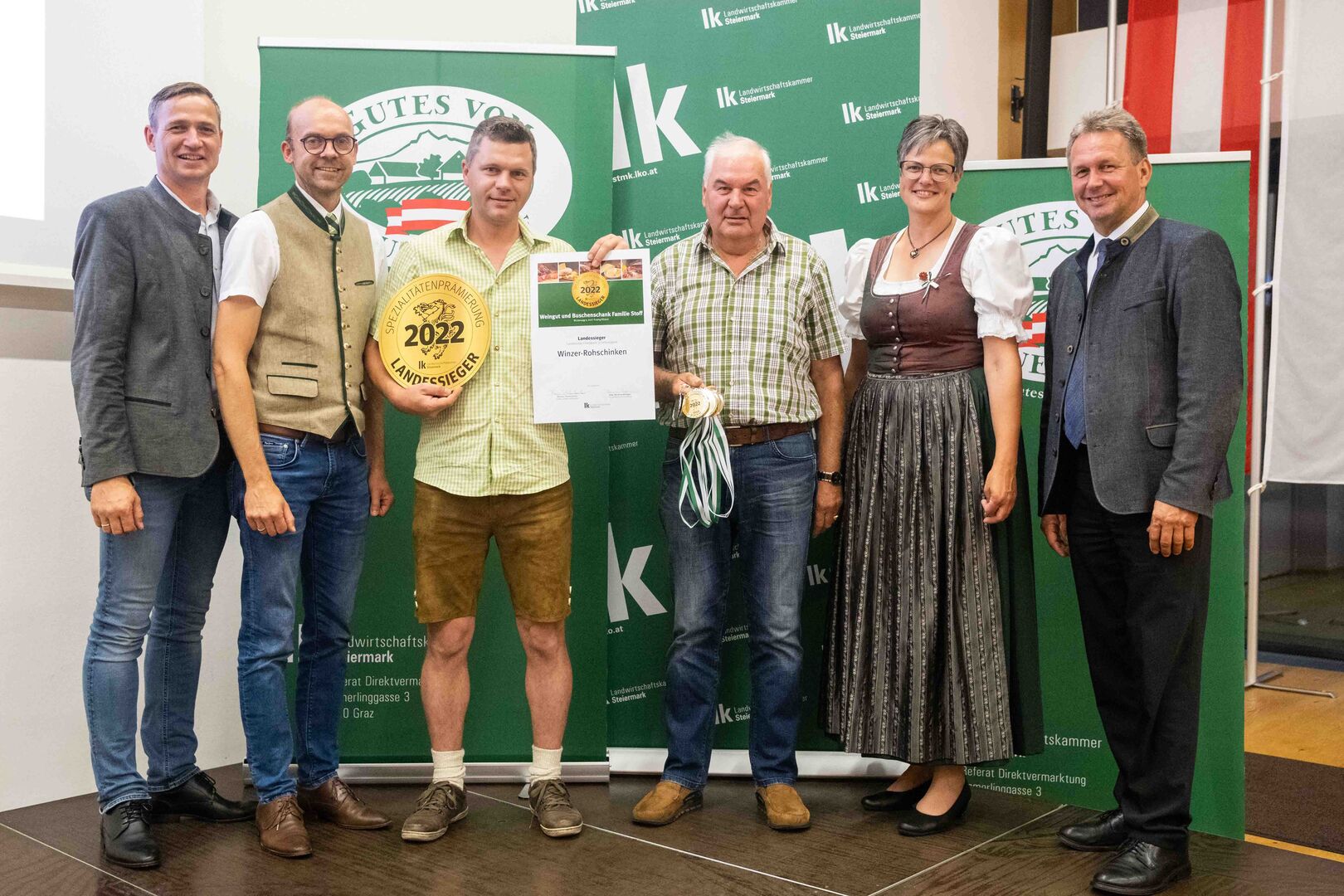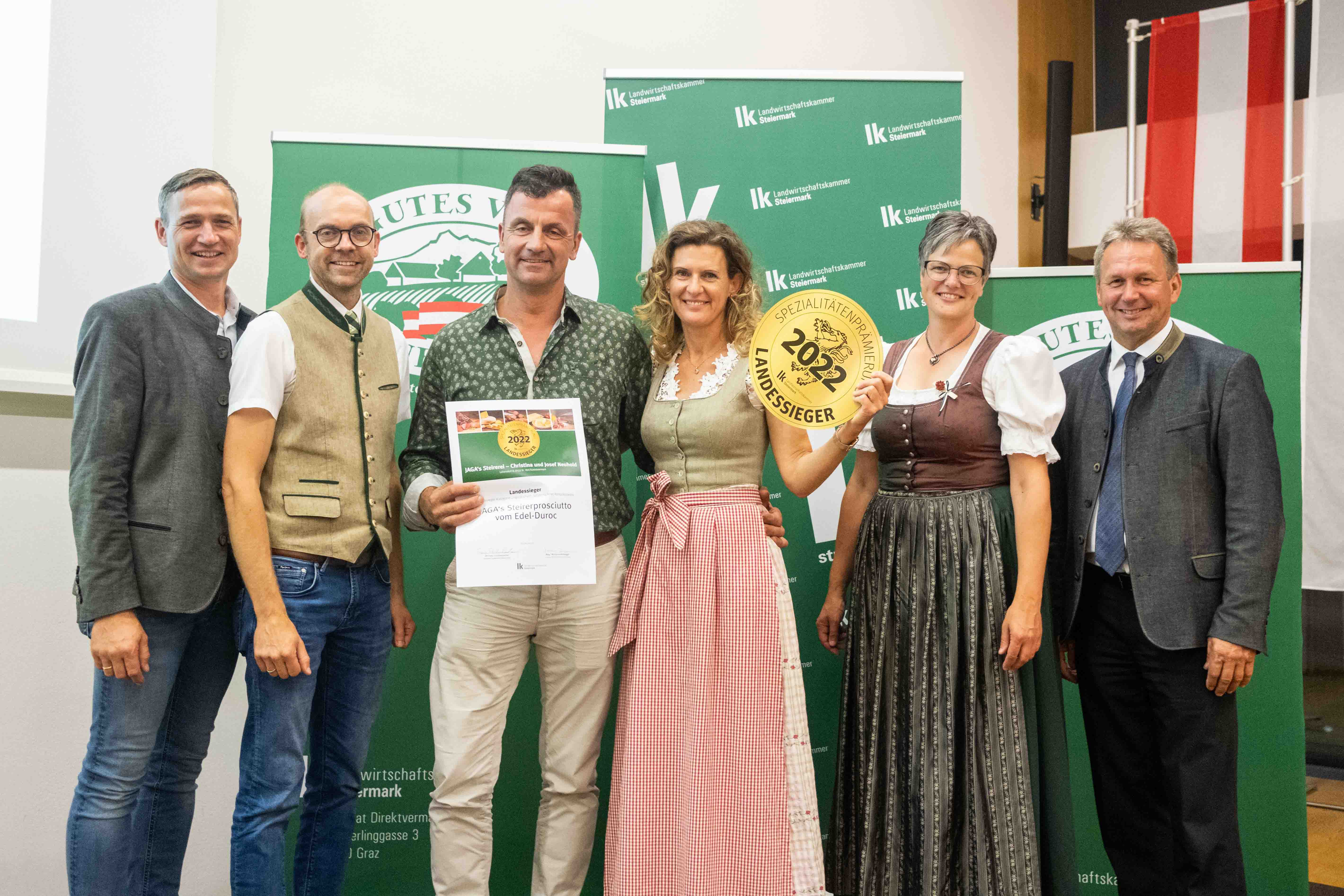 - Auch Christina und Josef Neuhold von Jaga´s Steirerei aus St. Veit/Südsteiermark stehen zum wiederholten Mal auf dem Landessieger-Podest. Sie setzten sich mit ihrem Jaga´s Steirer-Prosciutto vom Edelduroc in der Kategorie „luftgetrocknete Rohpökelwaren“ durch.