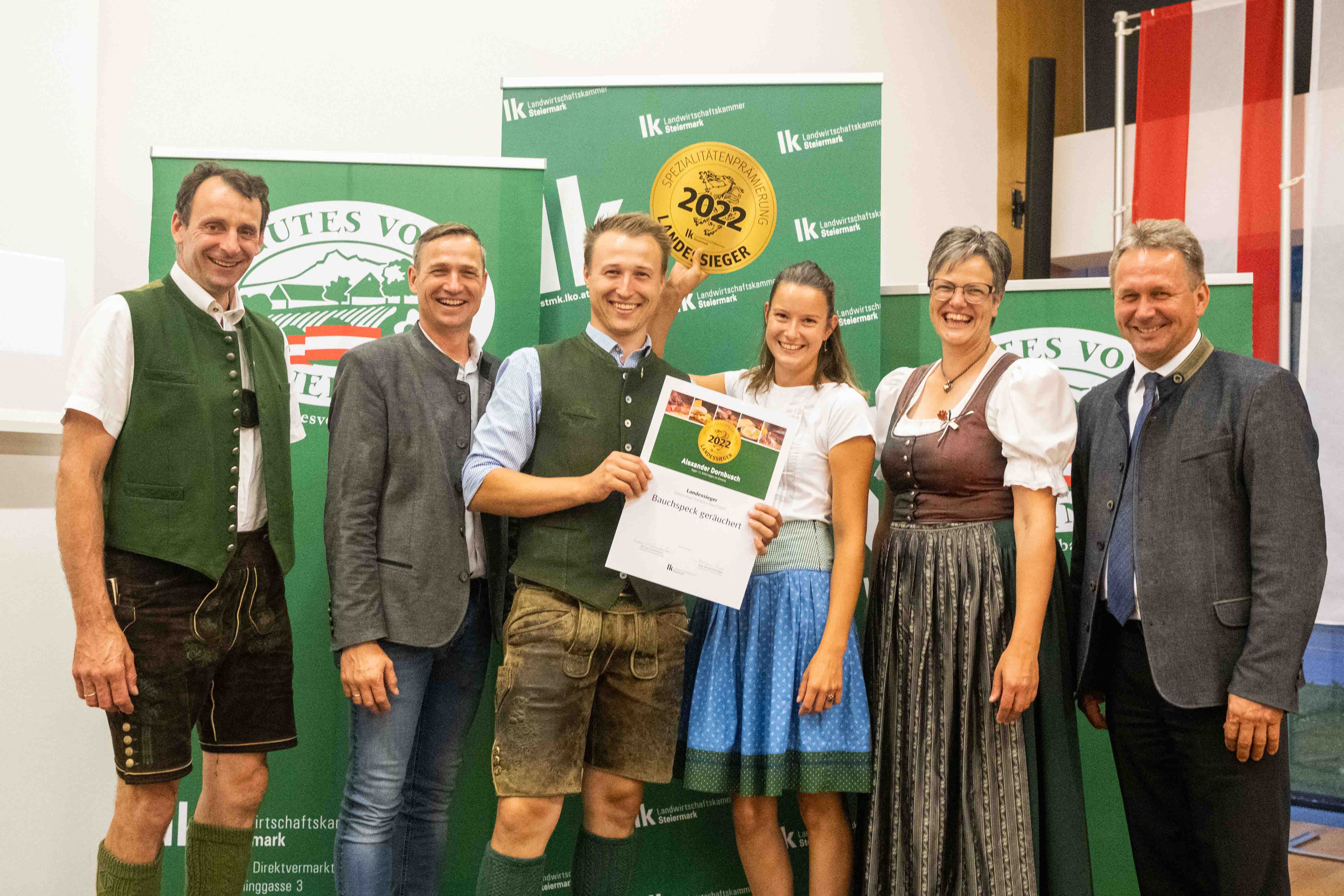 - Alexander Dornbusch aus Aigen/Ennstal wurde von der Fachjury für seinen geräucherten Bauchspeck mit dem Landessieg ausgezeichnet.