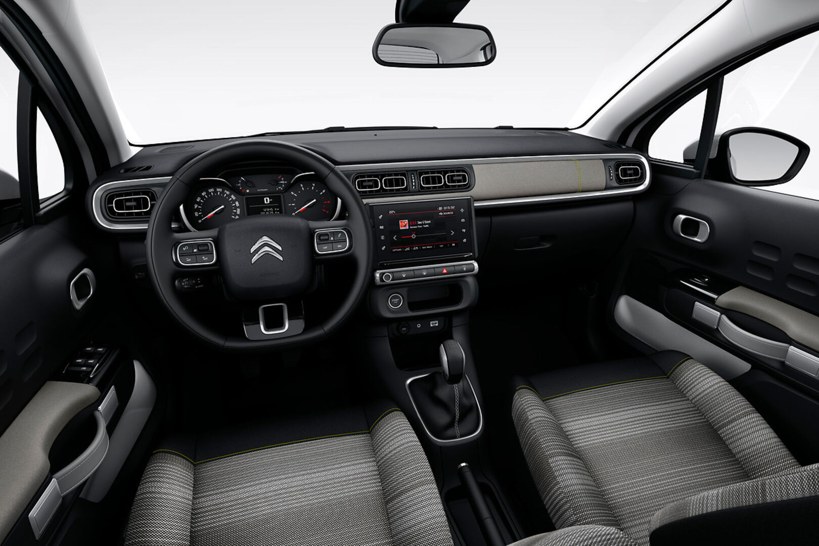 Im Zuge der modernen Ausstattung gibt es außerdem bis zu 12 Fahrerassistenzsysteme, die eine entspannte Fahrroutine garantieren. Für die optimale Sicherheit verfügt der neue C3 durch die Connect Box über zwei Notruf- und Assistancedienste mit Standortbestimmung. In der Mitte des Armaturenbrettes befindet sich darüber hinaus der hochmoderne und intuitive 17-cm-/7“-Touchscreen, der auf Wunsch auch mit der neuen Generation eine Navigationssystems verfügbar ist. Telefonieren, Navigieren und auch Infotainment können ganz einfach durch Spracherkennung aktiviert werden.