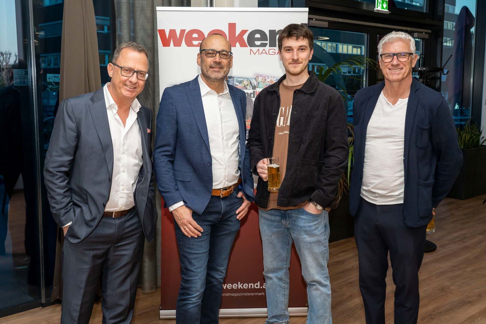 Die Vitrasan-Gesellschafter Peter Binder und Thomas Sulzer mit Weekend-Geschäftsführerin Nadja Tanzer.