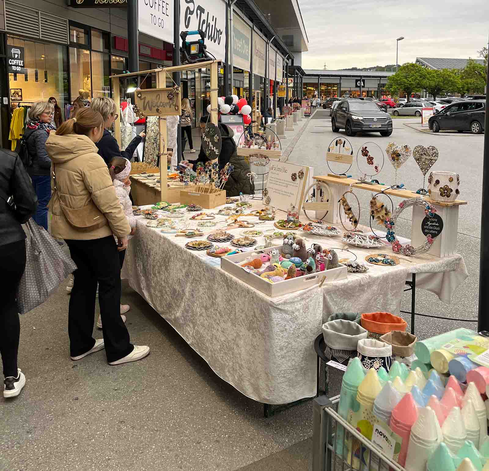 Handwerkskunst und kreative Ideen stehen ebenfalls im Mittelpunkt. Zu den Ausstellern zählen Fuchsia Schmuck mit edlen Designs, Erich Pekovnik mit handgefertigten Holzbasteleien, Miss Soapie mit nachhaltigen Naturseifen, Naturformen von Sarah Bartoschitz mit liebevoll geformter Keramik, Rosenkult mit Schmuck aus Recyclingmaterialien, die Fädelwerkstatt aus Graz mit individuellen Schmuckstücken und verymary mit handgemachten Karten und Illustrationen