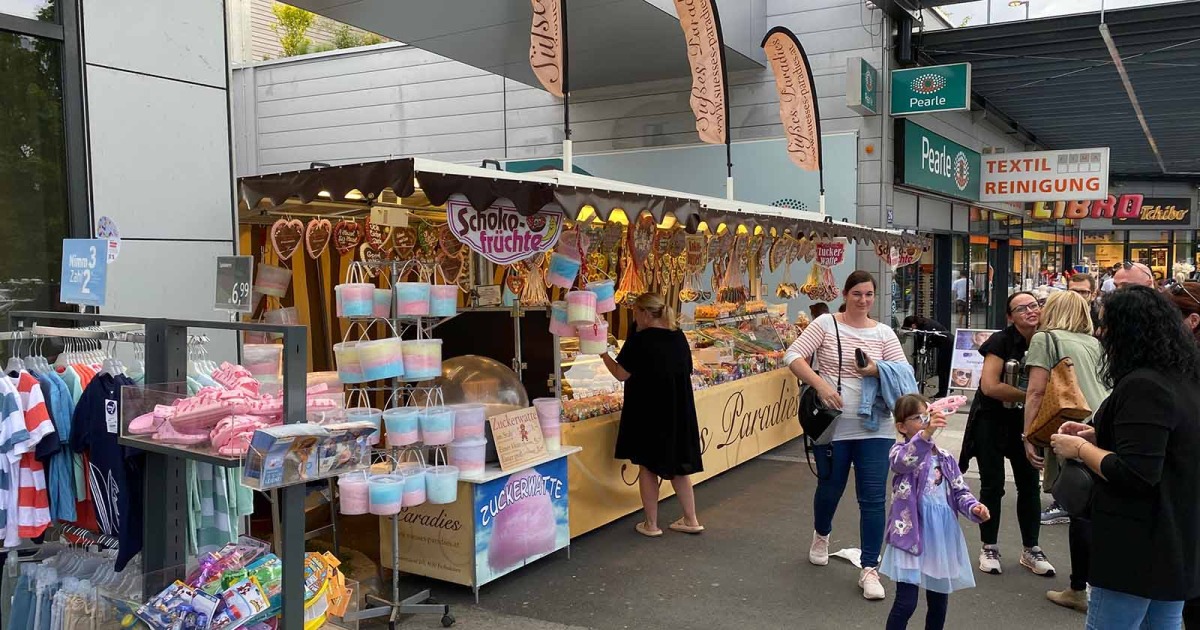 Neben dem Shopping stehen auch die kleinen Momente im Mittelpunkt: liebevolle Muttertagsgrüße, die man in den Shops entdecken kann, und Live-Musik von der Band „45grad“, die mit ihrem Sound für sommerliche Stimmung sorgt. Wer eine kurze Pause vom Stöbern braucht, findet bei Straßenkunst und kulinarischen Köstlichkeiten entspannte Abwechslung.