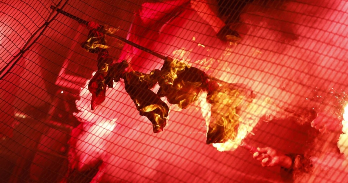 Im Stadion wurden Bengalos und Leuchtraketen zwischen den Fans der beiden Mannschaften ausgetauscht. Es kam zu Handgreiflichkeiten auf den Rängen. Ein Mann stürzte von den Rängen in den Stadiongraben. Er wurde schwerverletzt. Insgesamt mussten drei Personen mit Verletzungen ins Krankenhaus eingeliefert werden.