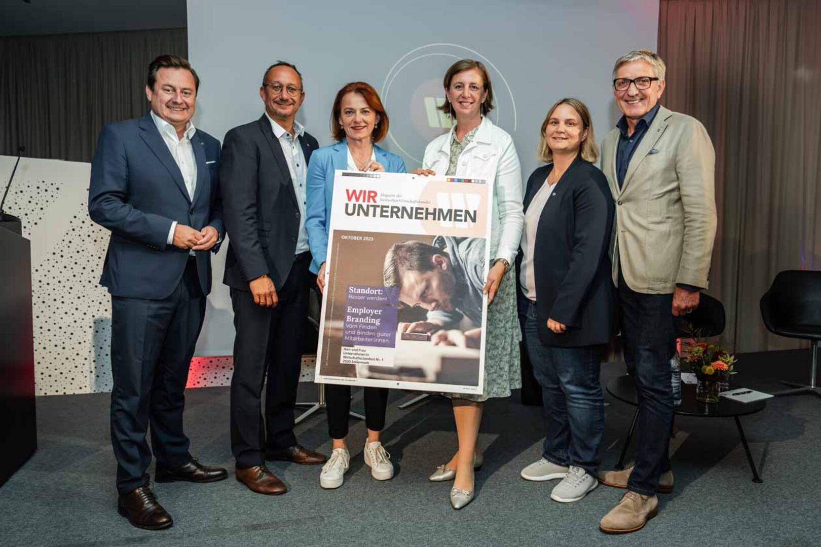 Danach kamen auch WB-Generalsekretär Kurt Egger, Landesrätin Barbara Eibinger-Miedl und EU-Abgeordnete und designierte Landesrätin Simone Schmiedtbauer, selbst zu Wort. "Die vorgestellten Zahlen, Daten und Fakten zeigen klar, mit einer 32-Stunden-Woche können wir weder die Erwartungen an einen funktionierenden Sozialstaat noch die wirtschaftliche Entwicklung positiv beeinflussen", fasste WKO-Präsident Josef Herk, Landesgruppenobmann WB Steiermark die Vorträge zusammen. Am Ende wurde dann auch das neue Mitglieder-Magazin "WIR UNTERNEHMEN" feierlich enthüllt und an die Gäste verteilt.