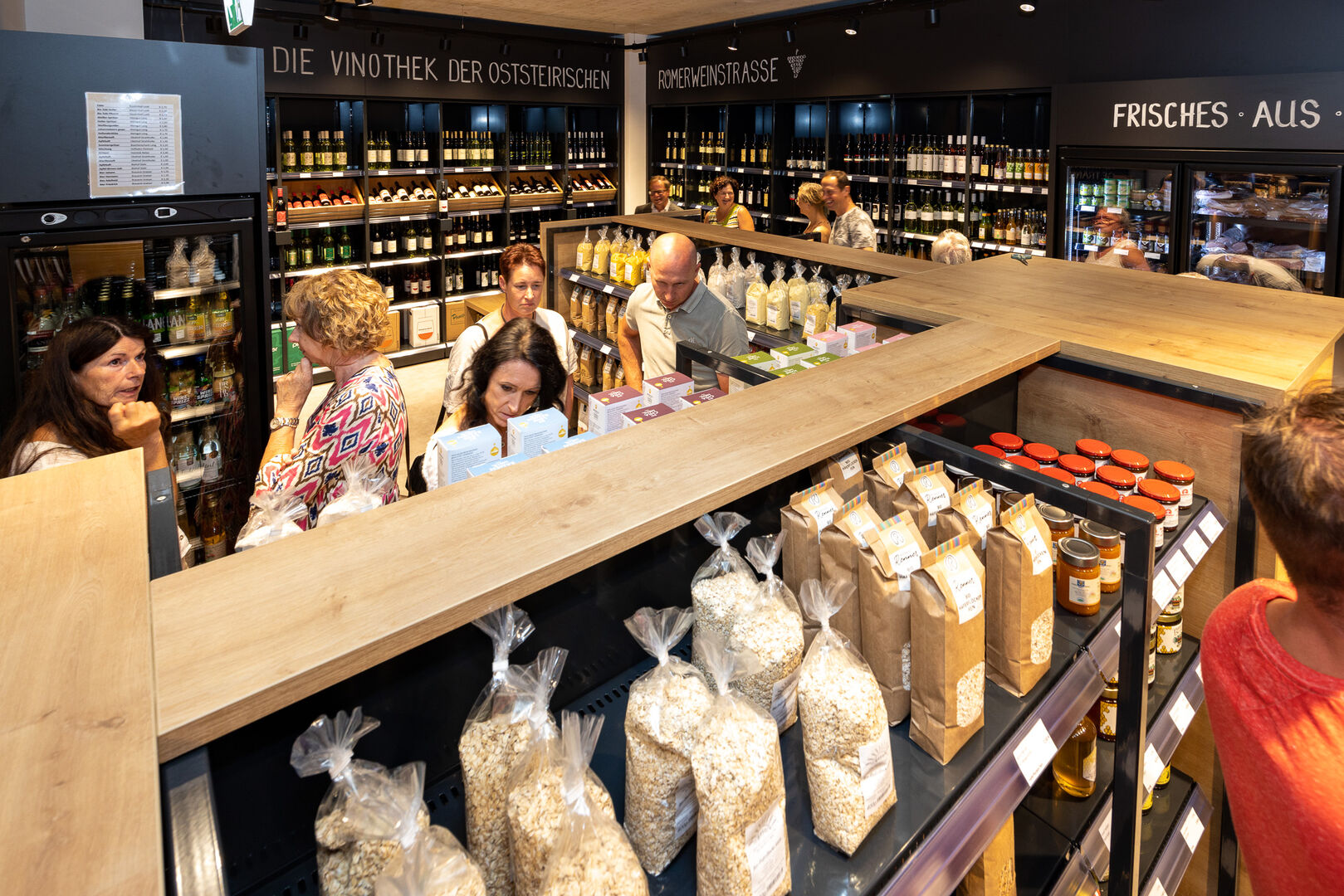 "koch`n - kost`n - kauf`n" ist das Motto des neuen Projekts des Verein Kulmland Region in Pischelsdorf am Kulm. Dank Zusammenarbeit der Kulmland-Gemeinden entstand mit der Kulmländerei eine Mischung aus Gastronomiestätte und Regional-Shop. Neben heimischen Produkten ist dies auch die erste Vinothek der Oststeirischen Römerweinstraße.