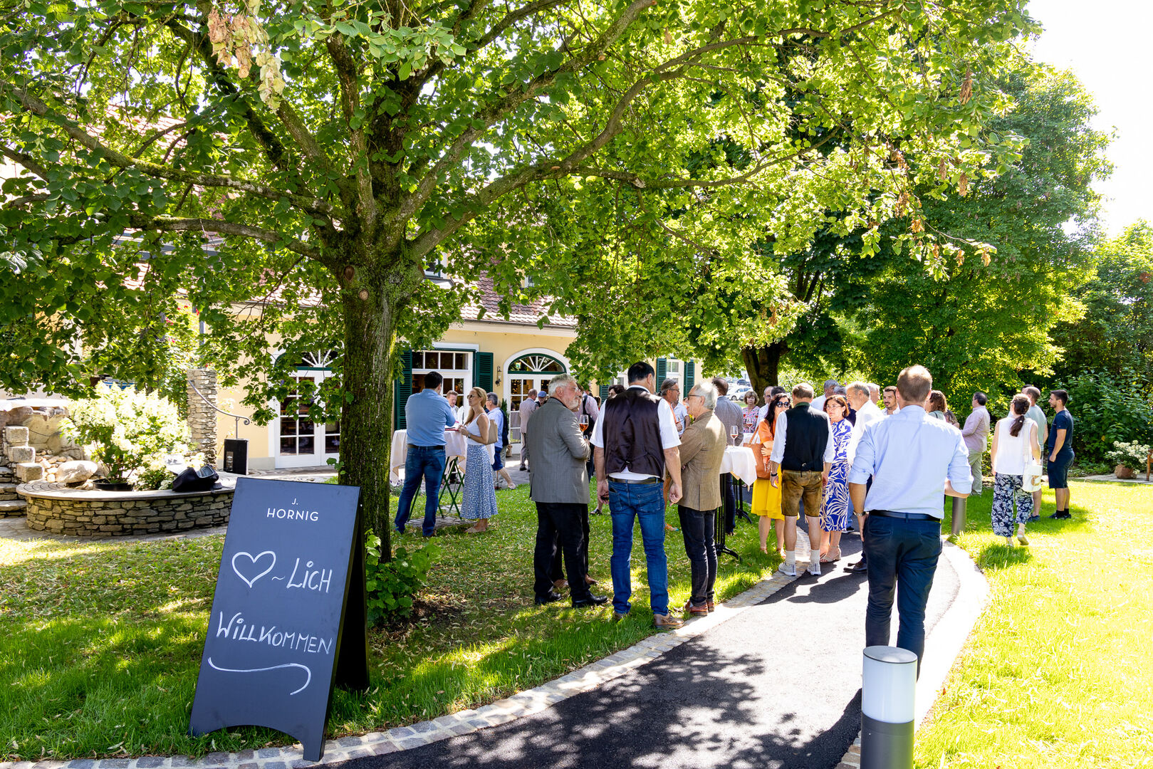 Am 14. Juli erfolgte die Eröffnung des Projektes, mit dabei unter anderem Georg Knill. Prominenter Unternehmer aus der Oststeiermark und Präsident der österreichischen Industriellenvereinigung, sowie Eigentümer der Liegenschaft. Mit kulinarischen Highlights und guten Tropfen war die Eröffnung bei traumhaftem Wetter ein voller Erfolg.
