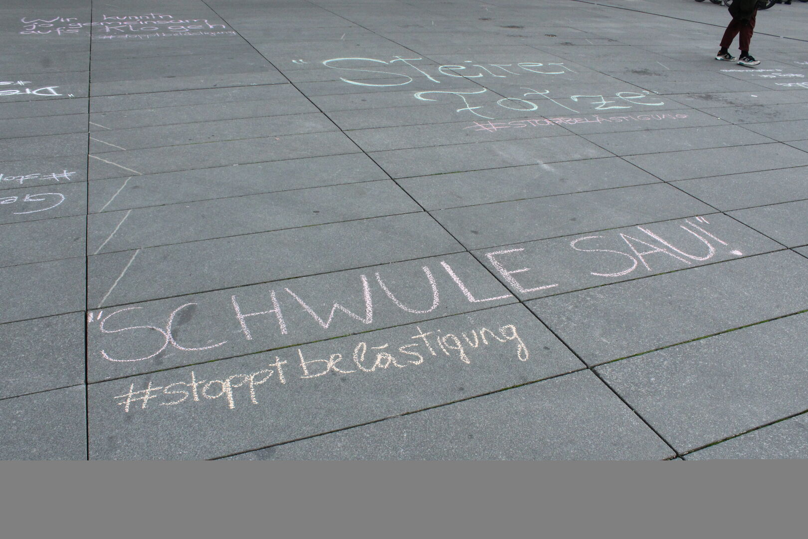 Apropos ankreiden: Gestern veranstaltete "Catcalls of Graz" ihr erstes Event am Grazer Hauptplatz. Jeder konnte kommen und seine Erfahrungen mit Kreide aufschreiben. Wem das zu persönlich war, konnte einfach aus eingeschickten Sprüchen wählen. Am Ende war der Hauptplatz bunt - mehr als 80 Catcalls standen dort. Schön anzusehen, aber traurig zu lesen. Bei der Veranstaltung wurde auch der neue Stammtisch ausgerufen. Jeden zweiten Dienstag im Monat kann man sich ab jetzt mit den Grazer Aktivisten treffen und sich über sexuelle Belästigung austauschen. Anmeldungen werden unter catcallsofgraz@gmail.com entgegengenommen. Die Idee zum Stammtisch kam durch die große Nachfrage. "Uns haben immer mehr Leute gefragt, wo sie uns denn kennenlernen können. Menschen wollen darüber reden und wir wollen ihnen einen Raum geben", meint Kampitsch. Denn: Sexuelle Belästigung ist da. Und muss angesprochen werden.