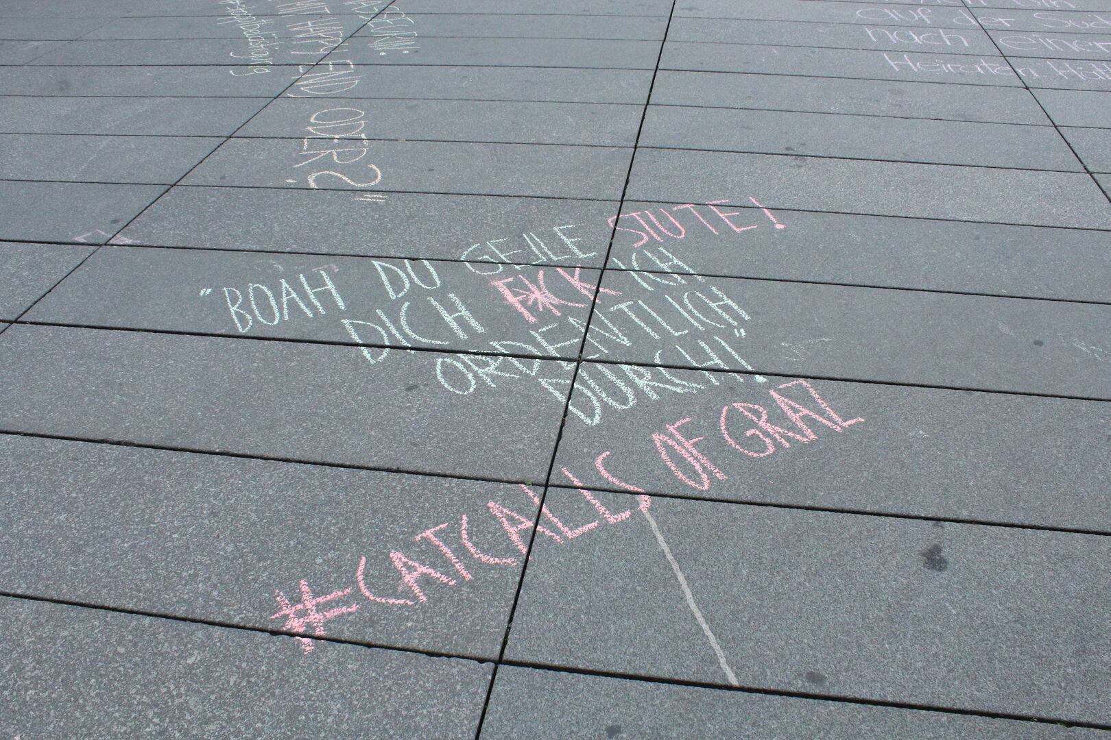 "Geiler Arsch", "fesch, fesch, ausziehen", "Weißt vielleicht ein Puff in der Nähe? Oder hast du Lust mitzukommen?" Vielen Grazern mögen solche Sprüche in den letzten Monaten öfters in der Landeshauptstadt untergekommen sein. Und zwar mit Kreide auf die Straßen und Gassen der Stadt geschrieben. Nicht gerade Sätze oder Bemerkungen, die gerne gelesen oder gesehen werden. Noch schlimmer ist es jedoch, wenn man sich solche Sprüche anhören muss - sei es am Nachhauseweg von der Universität, bei der wöchentlichen Laufrunde oder einfach beim Spazierengehen. Sexuelle Belästigung ist noch immer Teil des Alltags, vor allem beim weiblichen Geschlecht. Laut der "Österreichischen Prävalenzstudie zur Gewalt an Männern und Frauen" erleben 3 von 4 Frauen (74, 2 Prozent) sexuelle Belästigung. Diese passiert im Alltag, aber auch im Berufsleben. Im Jahr 2018 führte das Online-Portal Statista eine Umfrage zur Verbreitung von sexueller Belästigung am Arbeitsplatz durch. Rund die Hälfte der befragten Frauen gaben an, damit konfrontiert zu sein.