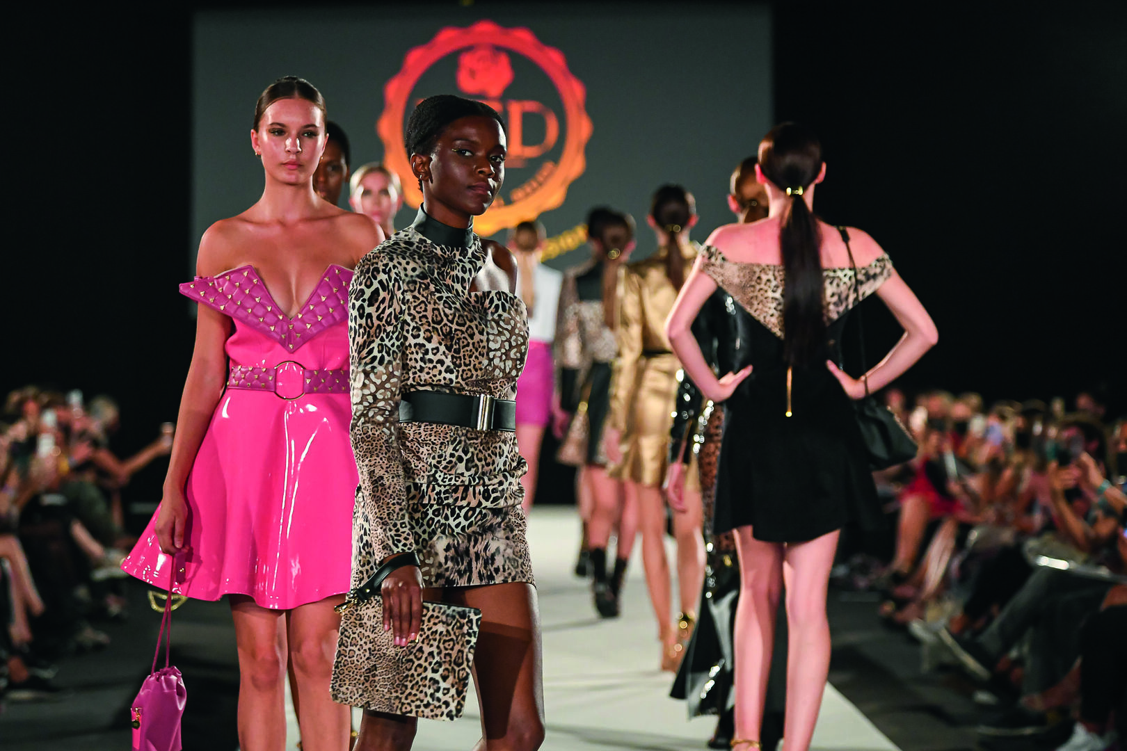 In der Kollektion geht es, wie unschwer zu erkennen ist, um Leoparden. Es spiegelt Raubkatzen wider, die sich in der Großstadt verirrt haben und nun versuchen, sich dort wiederzufinden. Die Kollektion soll etwas an den Safari-Look angelehnt sein, aber auch einen modernen Touch haben. Deswegen habe ich vermehrt mit Lederakzenten, verschiedenen Stoffen und Gold gearbeitet.