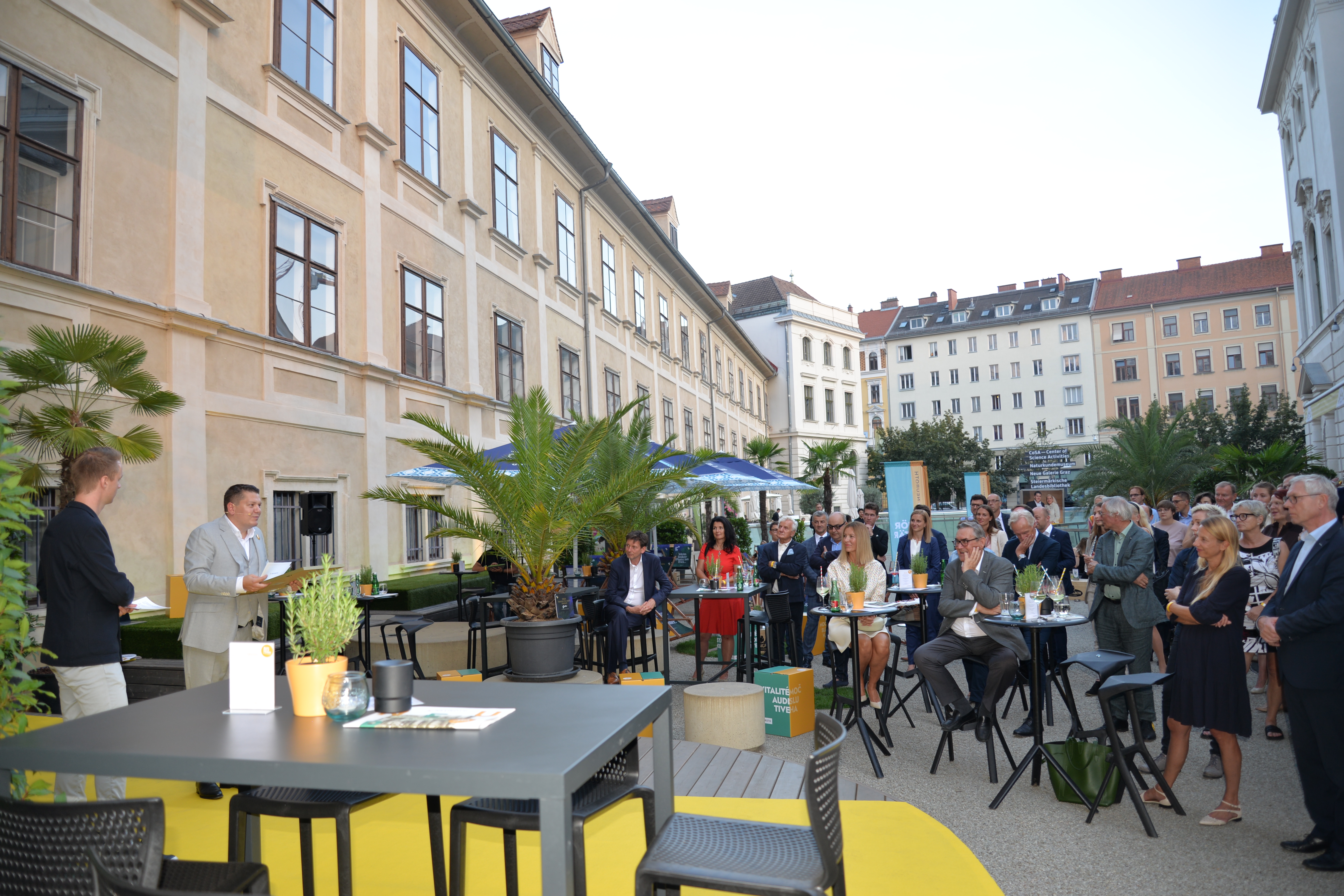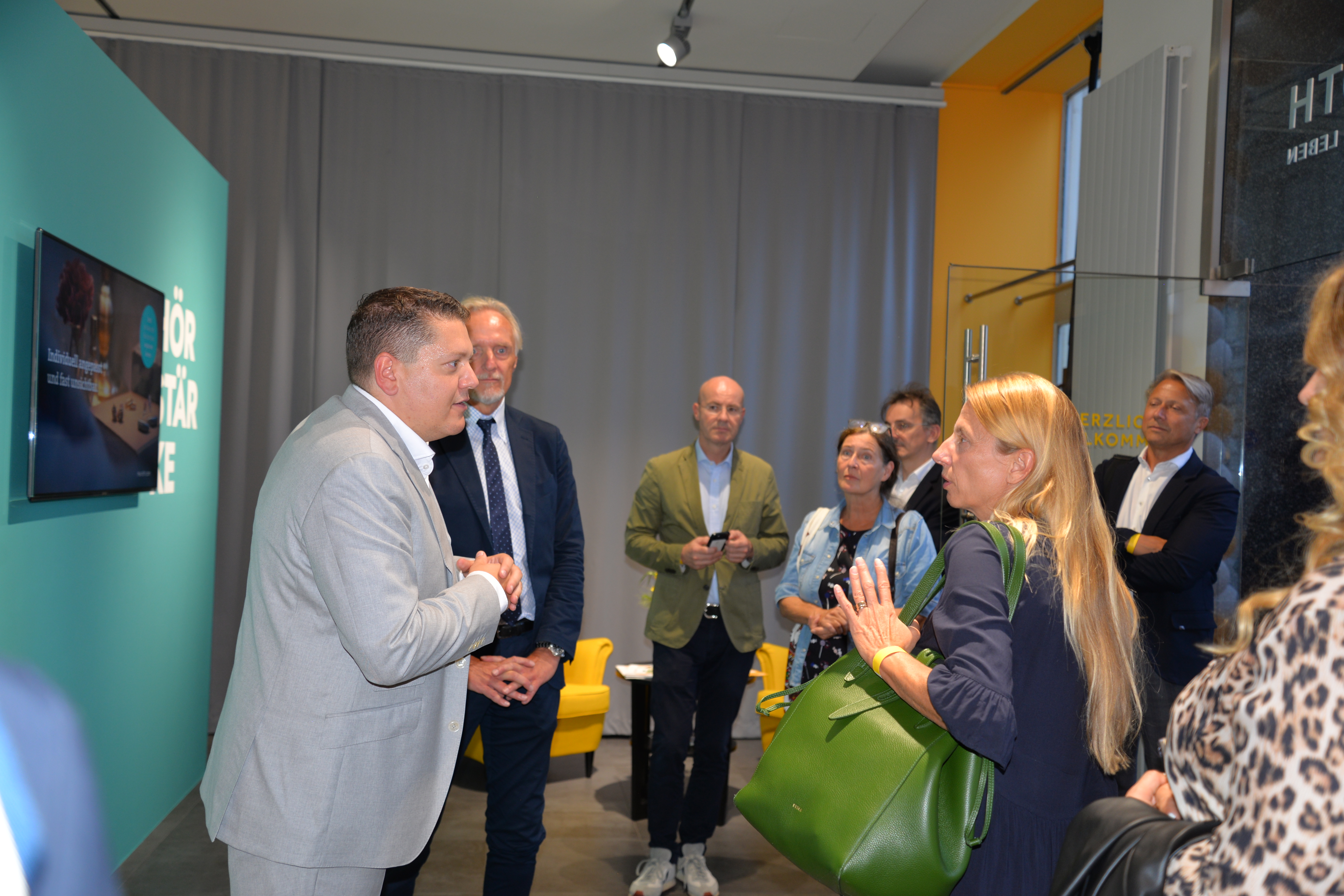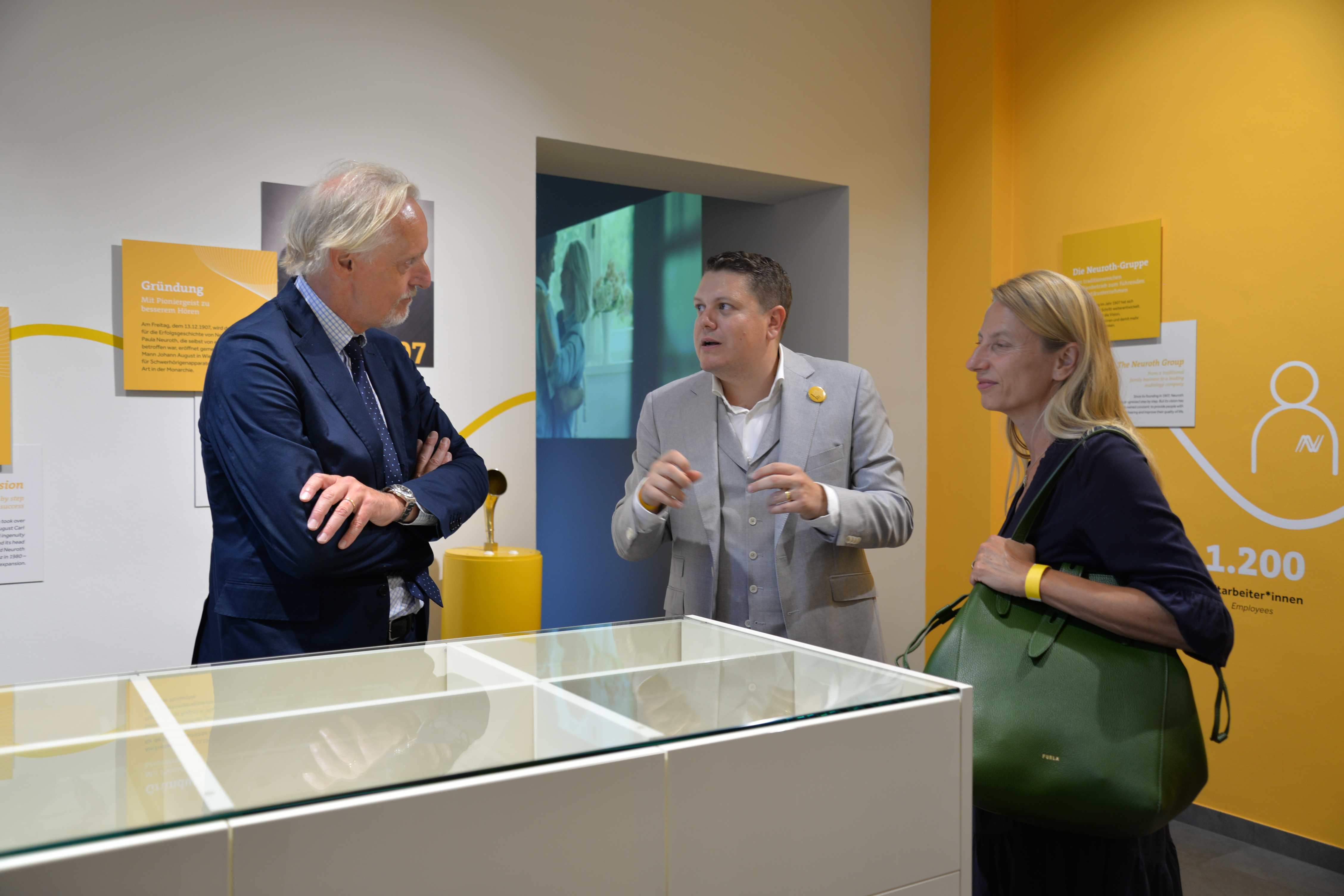 Bürgermeisterin Elke Kahr, Stadtrat Günter Riegler, Gesundheitslandesrätin Juliane Bogner-Strauß mit Neuroth-CEO