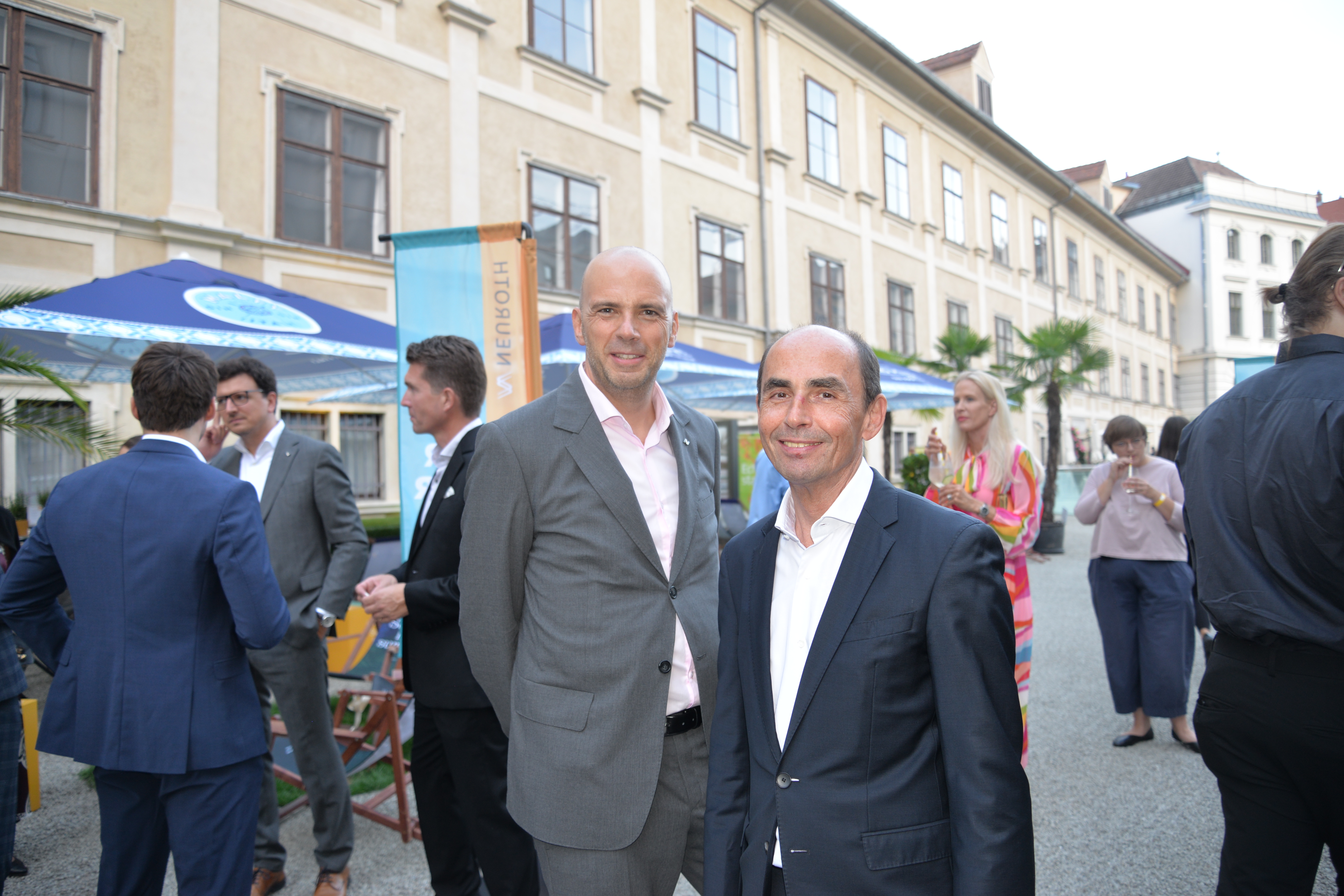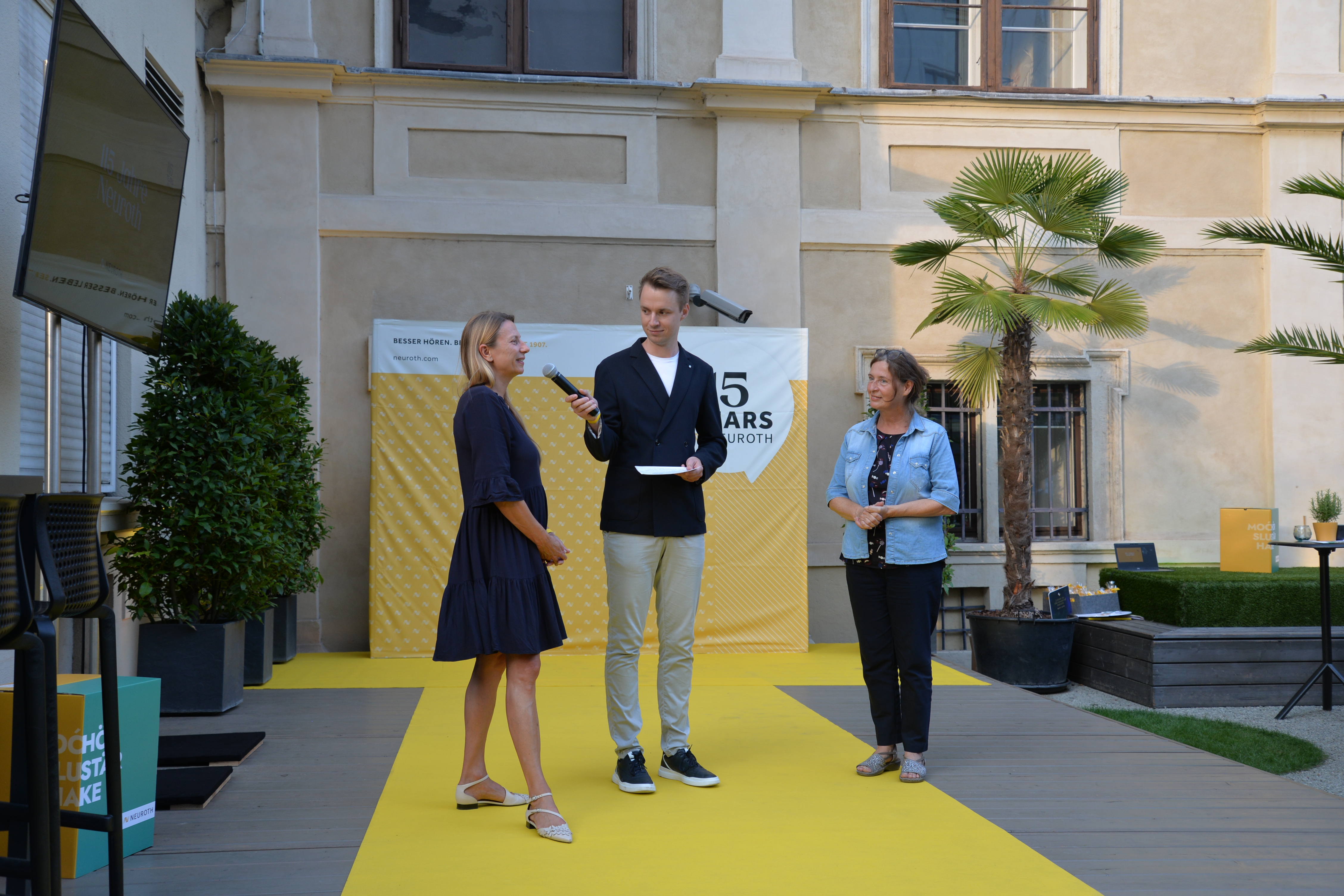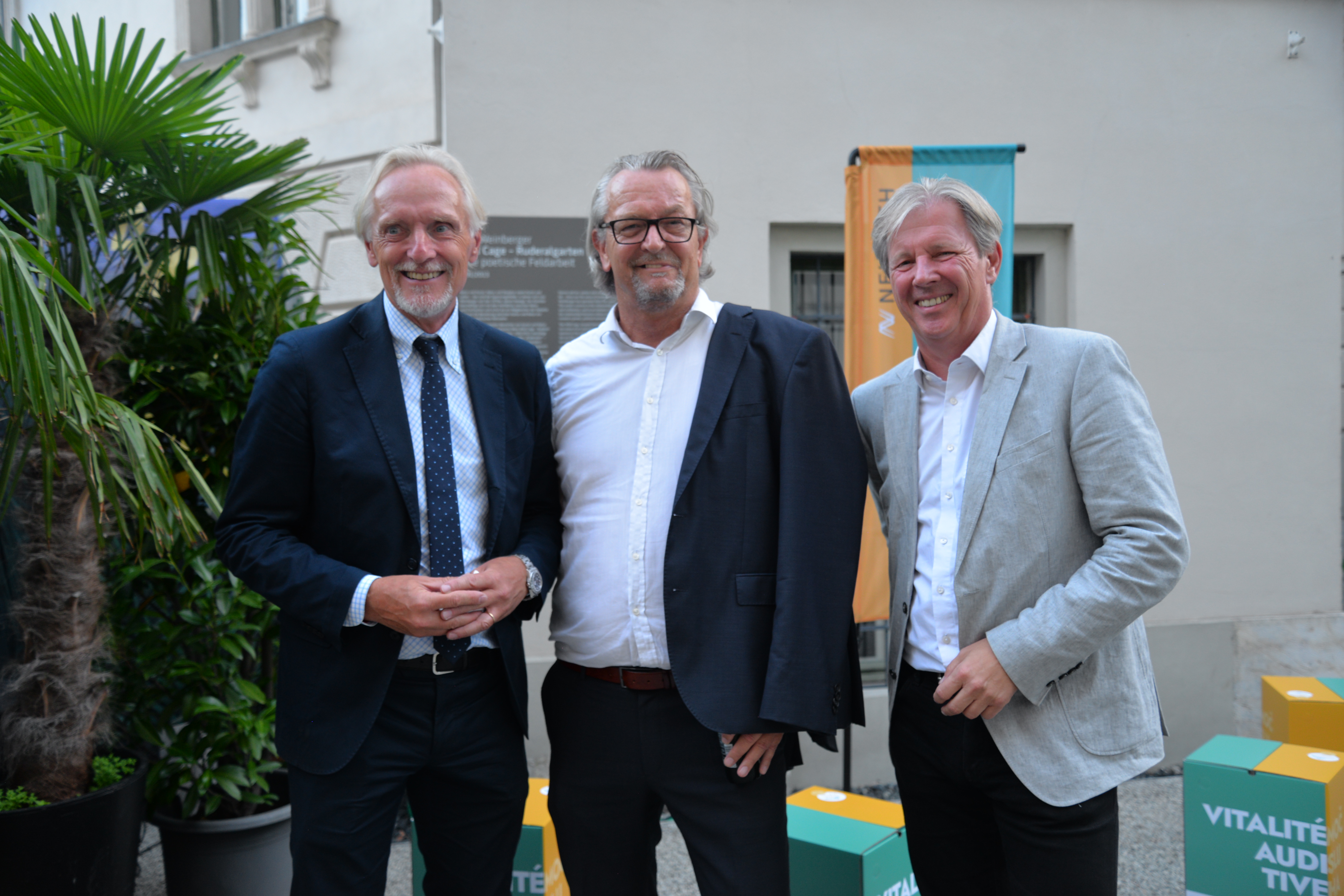 Bürgermeisterin Elke Kahr, Stadtrat Günter Riegler, Gesundheitslandesrätin Juliane Bogner-Strauß mit Neuroth-CEO