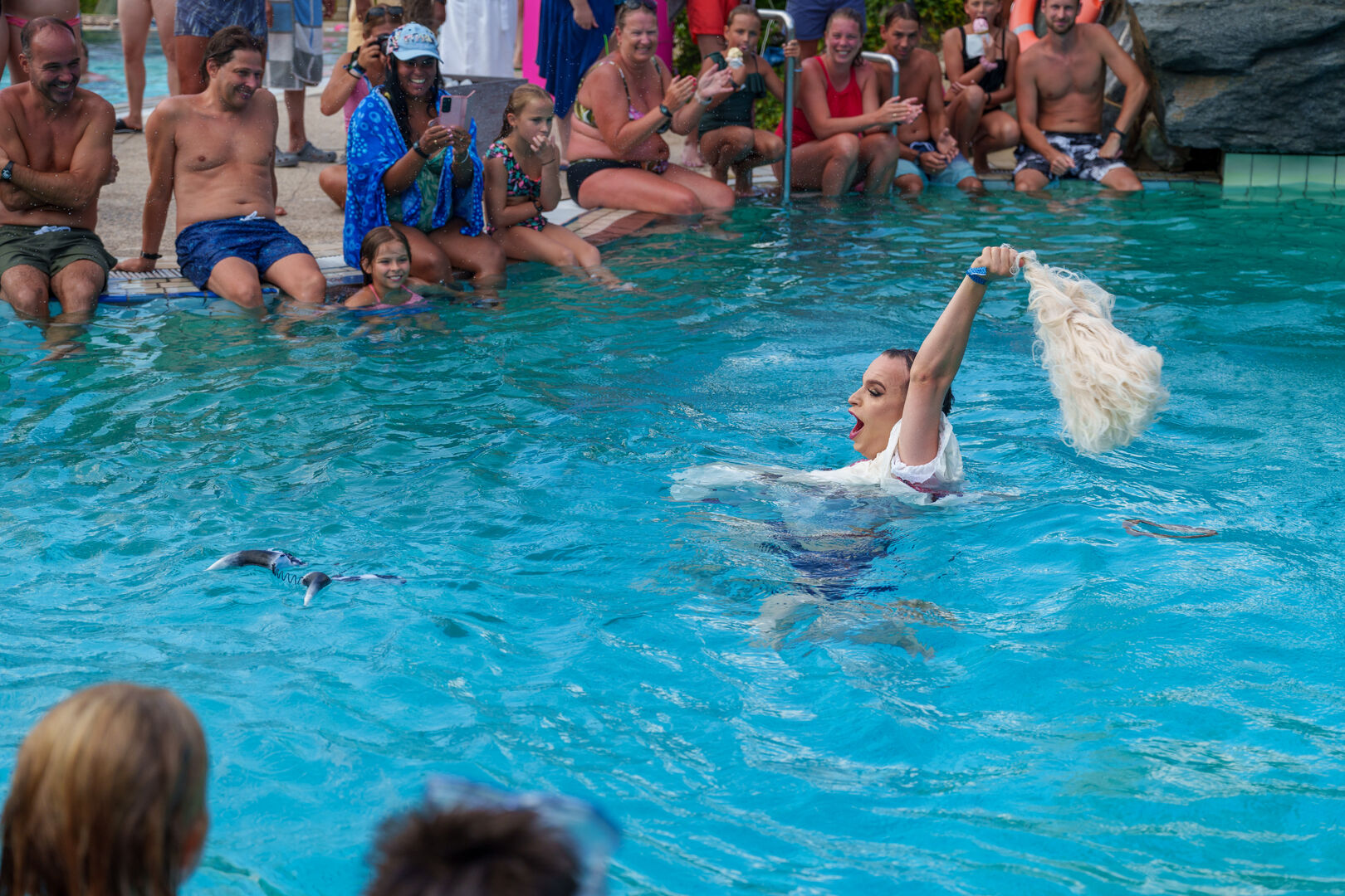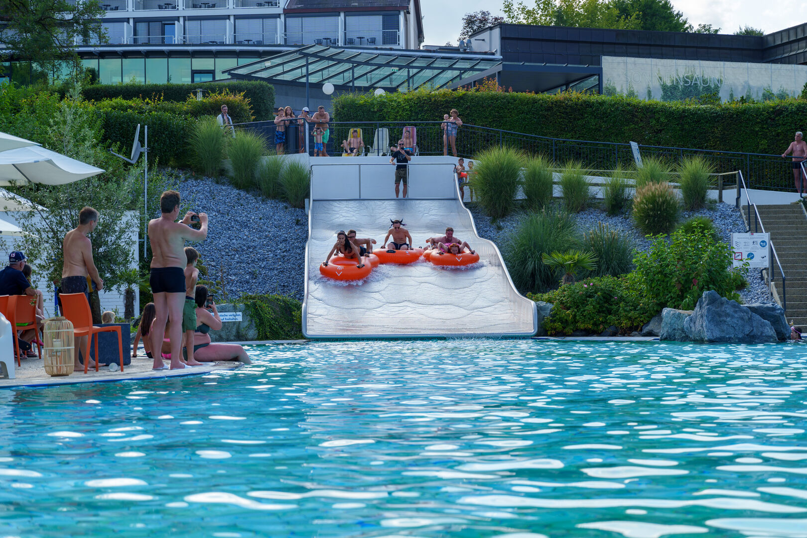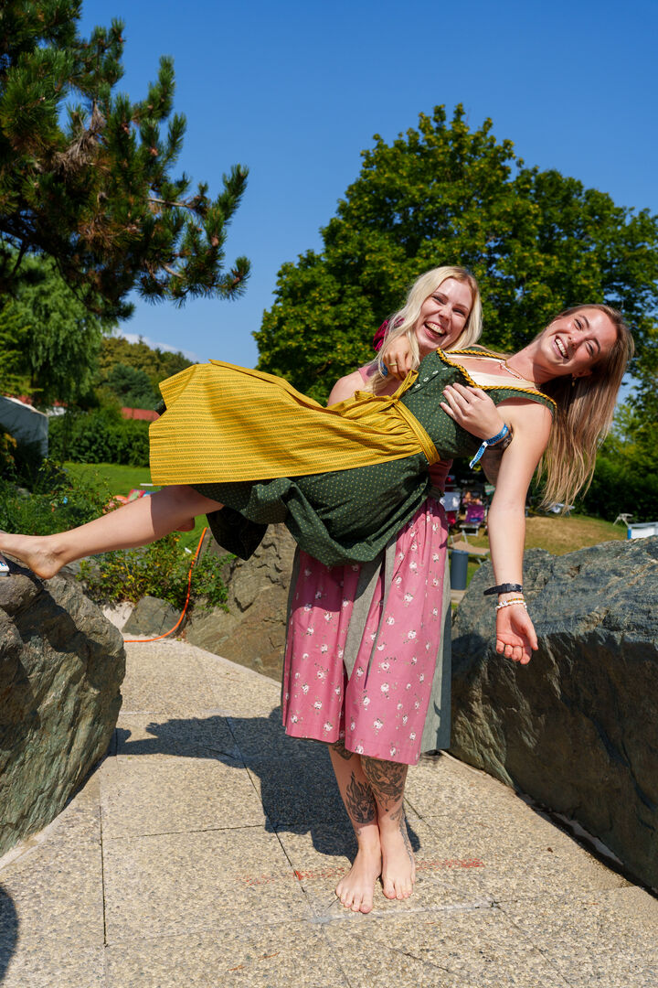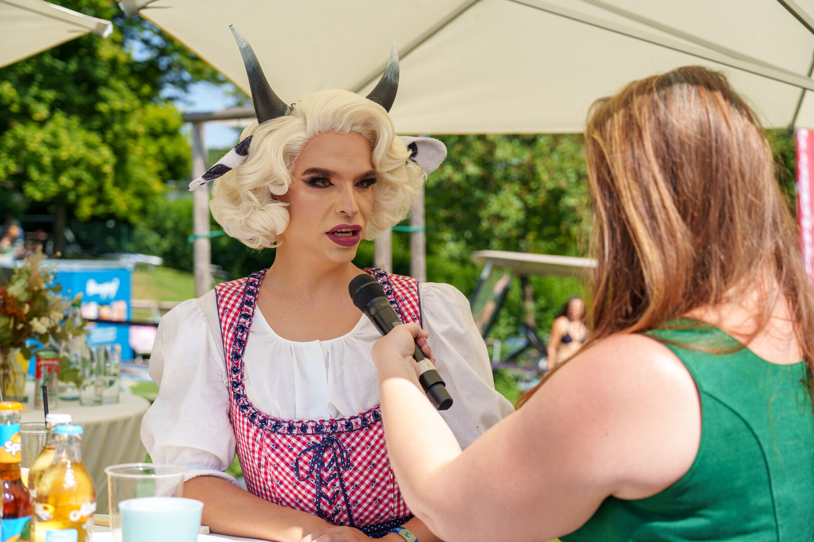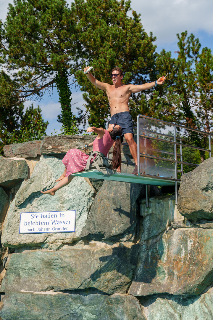 Die von Trachtenmoden Hiebaum ausgestatteten Teilnehmer sprangen ums Vergnügen. Mitmachen konnte jeder, der sich vorab zum Event angemeldet hatte. Eine Sprungperformance der besonderen Art bot Drag Queen Tamara Mascara: Sie überraschte alle, in dem sie als Frau ins Wasser sprang und als Mann wieder auftauchte. Im Finale traten die Teams im Doppelreifen-Rutschen und beim Wettpaddeln gegeneinander an – eine Party der Extraklasse!