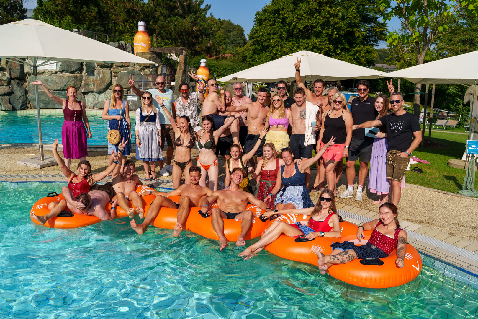 In Partylaune: Trachtenspringen in der Therme Loipersdorf