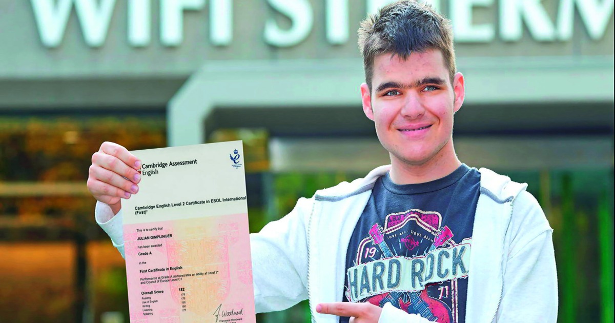 Bis Julian Gimplinger sein Cambridge-Certificate stolz in Händen halten konnte, gab es für ihn und das WIFI Steiermark einige Hürden zu bewältigen – war er doch der erste blinde Absolvent dieses international anerkannten Zertifikats am WIFI Steiermark. Letztendlich haben sie diese aber gemeinsam perfekt gemeistert.
