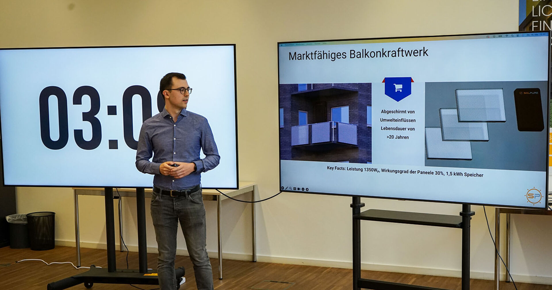 Aus den insgesamt 25 Einsendungen qualifizierten sich fünf Ideengeber fürs Finale. An die Spitze voteten die Juroren das innovative Balkonsystem Umbra, das Beschattung, Solarkraftwerk und kühlenden Sprühnebel vereint. Gewinner Max Schwarzlmüller, angehender Architekt, sicherte sich mit seinem Konzept 1.000 Euro an Siegerprämie: „Unsere größte Energiequelle, die Sonne, wird bis jetzt nur in gewisser Weise genutzt. Photovoltaikanlagen sammeln meist nur am Dach die kostbare Energie. Hier setzt mein System an: Umbra wird an der Balkonbrüstung montiert und bietet ohne Platzverlust Beschattung und speichert dank integrierter Solarzellen Sonnenenergie in einem Akku.“