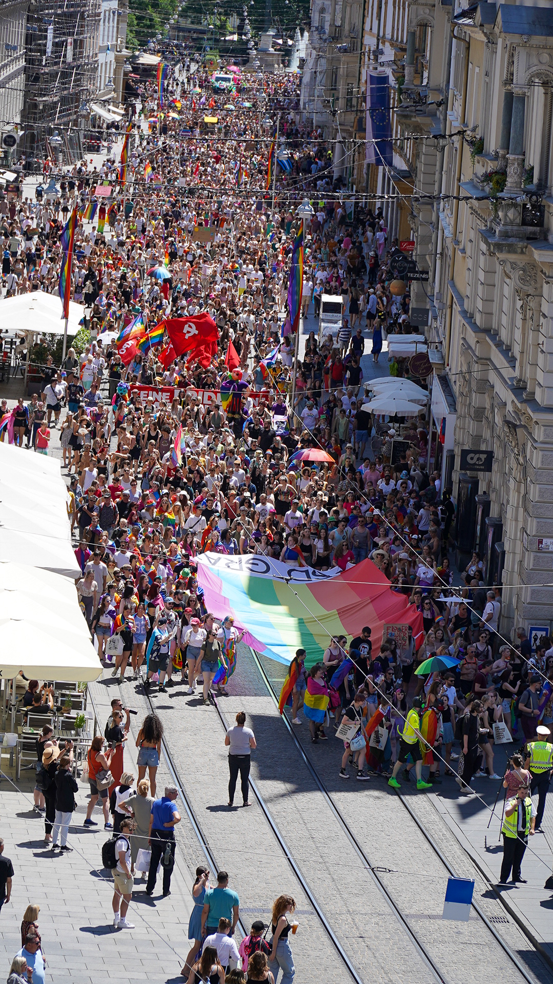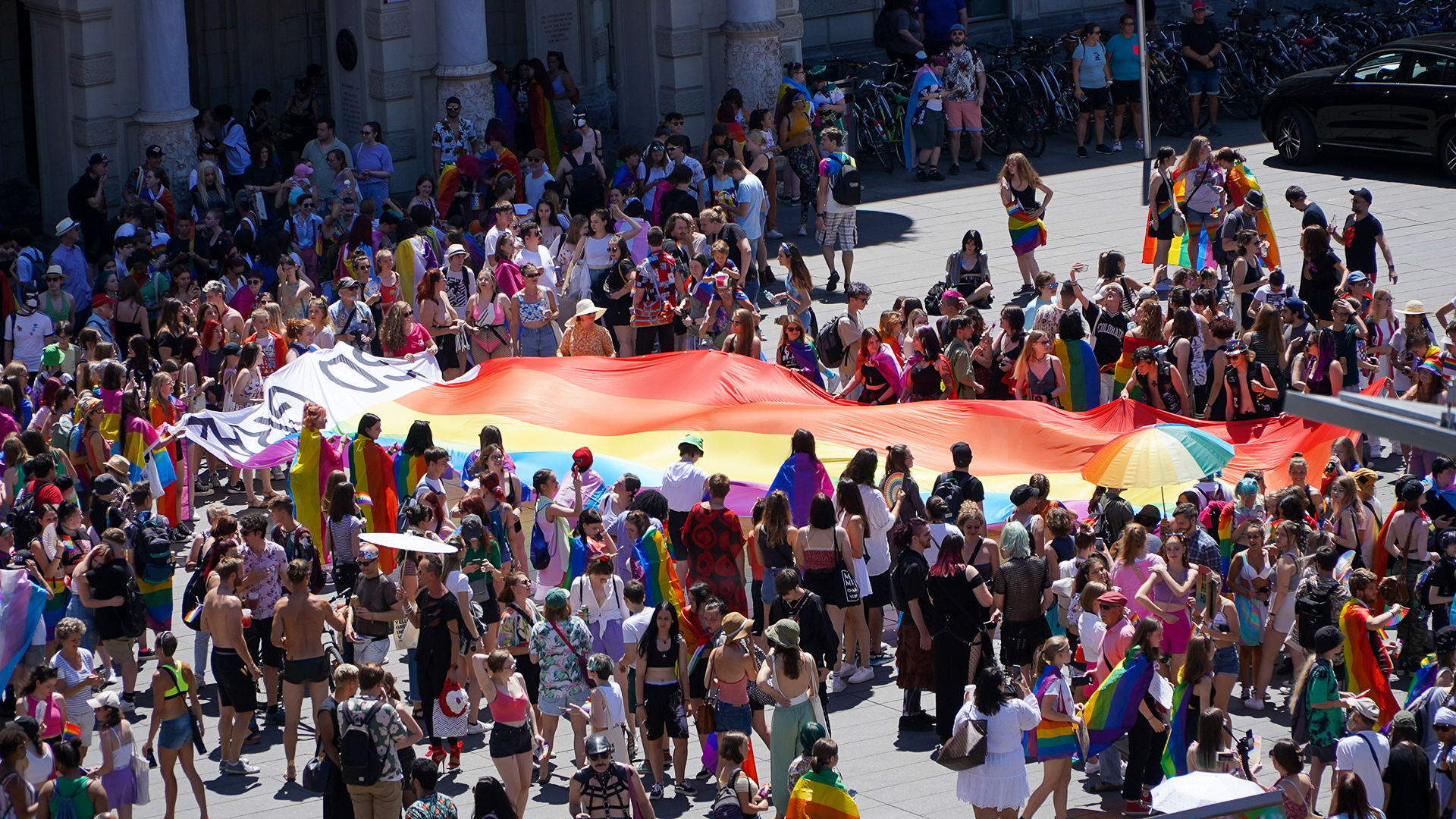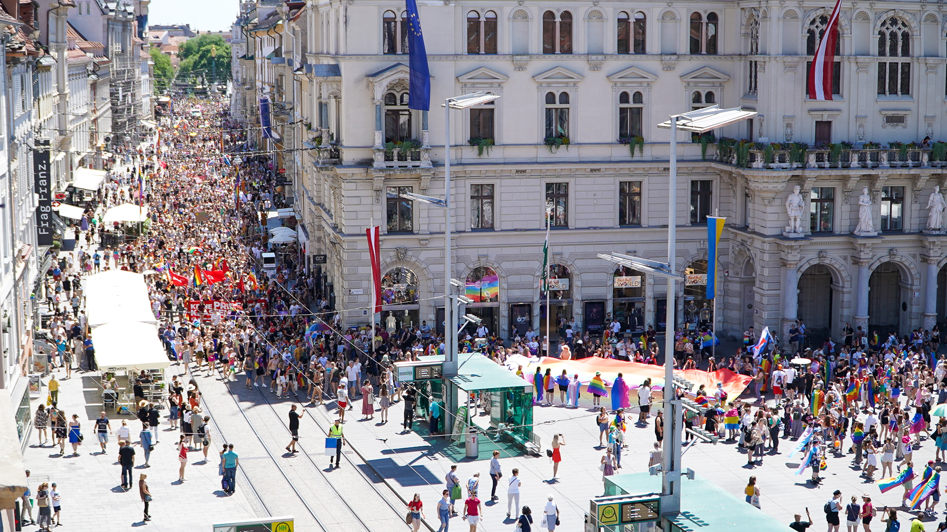 Der farbenfrohe Demozug wurde am Hauptplatz angehalten, wo Bürgermeisterin Elke Kahr und Vizebürgermeisterin Judith Schwentner berührende Rede hielten. Es wurden die Bemühungen aller gelobt, die sich seit Jahrzehnten für die Toleranz innerhalb der Gesellschaft und gegen Diskriminierung einsetzen. Ergänzt wurden sie dabei durch die Reden von zwei Vertreter:innen der Queer-Referate und Joe Niedermayer, Vorsitzender der RosaLila PantherInnen.