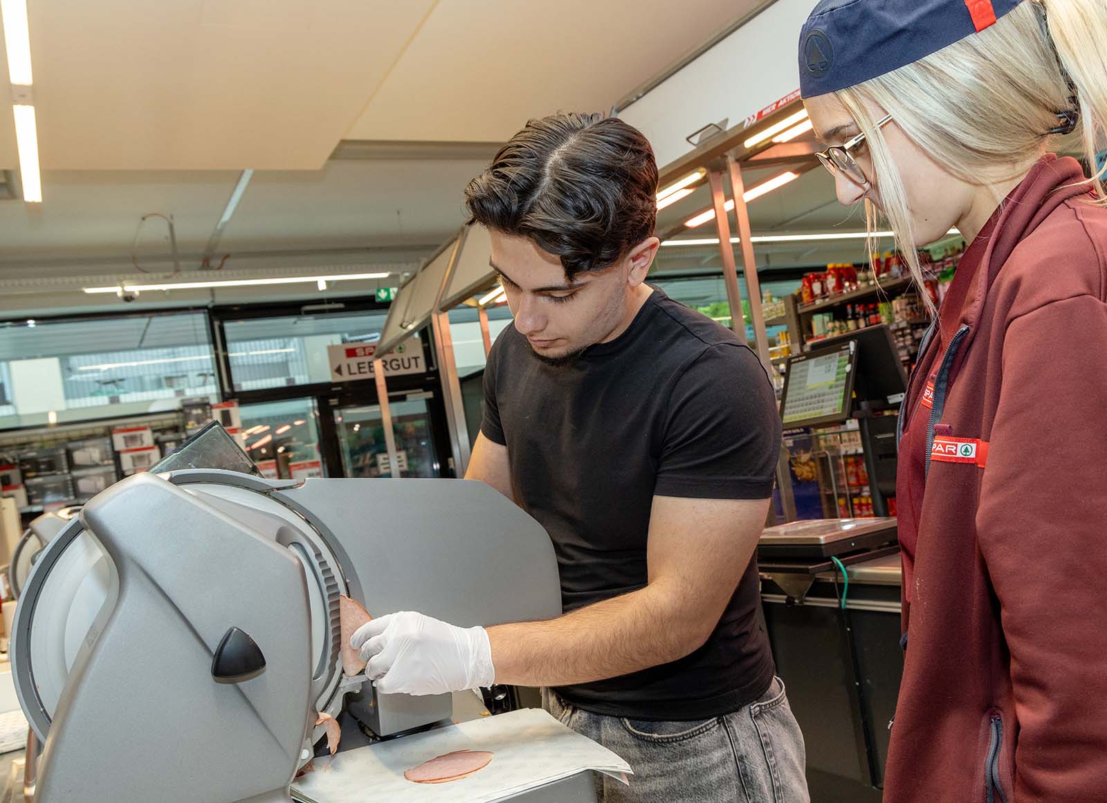 SPAR bietet Schulen und Ausbildungsinitiativen praxisnahe Betriebsbesichtigungen an. Eine Besichtigung dauert rund zwei Stunden und umfasst mehrere Stationen: In der Obst- und Gemüseabteilung führt ein SPAR-Lehrling durch den Bereich, in der Feinkost legen die Jugendlichen bei der Zubereitung von frischen Weckerl selbst Hand an. An der Kassa gibt’s Einblicke in den Kassiervorgang und abschließend folgen Infos zum Unternehmen, zu den Werten und zum Ablauf einer Lehre.