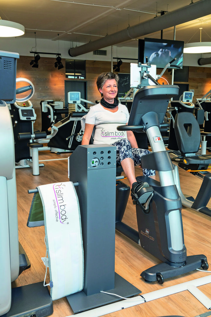 Toller Ansporn. Auch Bettina ist mit ihren momentanen Fortschritten sehr zufrieden. Mindestens zwei Mal pro Woche war sie im Studio und hat neben dem Training auch die angebotenen Figurbehandlungen absolviert. „Ich habe immer einen ähnlichen Ablauf: Zuerst wird gedehnt, dann geht es zum Circle-Training“, erzählt sie. Ihre Ergebnisse trackt sie regelmäßig über eine App, die im Studio angeboten wird. „Dabei kann ich die Fortschritte in den einzelnen Muskelabschnitten genau beobachten und das Gewicht leichter kontrollieren.“ Insgesamt fühlt sie sich nach den vier Wochen schon deutlich fitter. Und das macht sich auch auf der Waage bemerkbar: „Das ein oder andere Kilo habe ich bereits verloren“, freut sie sich.