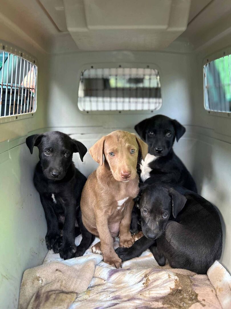 Da sich die Tierrettung des Aktiven Tierschutzes bereits in einem anderen Einsatz befand, sprang ein Mitarbeiter der Arche Noah ein und eilte zur Rettung der Welpen. Vor Ort zeigte sich dann das Ausmaß der Tragödie: Zehn Hundewelpen in zwei durchnässten Kartons. Von der Mutter-Hündin keine Spur. Die jungen Hunde wären den Kartons wohl bald entkommen und in der Umgebung herumgeirrt. Bei der Untersuchung in der Arche Noah stellte sich heraus, dass es sich bei den Welpen um neun Wochen alte Labrador-Mixe handelt, darunter vier Hündinnen und sechs Rüden. Trotz der traumatischen Erfahrung sind sie gesundheitlich stabil.