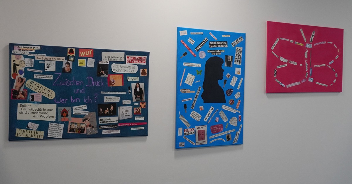 Teilnehmerinnen des Projekts emma gestalteten Plakate mit Motiven und Botschaften zu ihren Zielen und Vorstellungen einer selbstbestimmten Zukunft.