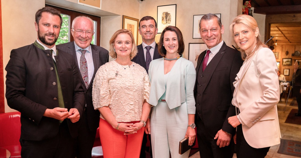 LH-Stv. Georg Dornauer, Herwig van Staa, Botschafterin Caroline Vermeulen mit Guiseppe Bossiner, Astrid Mair, Helmut Tomac und Katharina Wagensonner (v. li.)