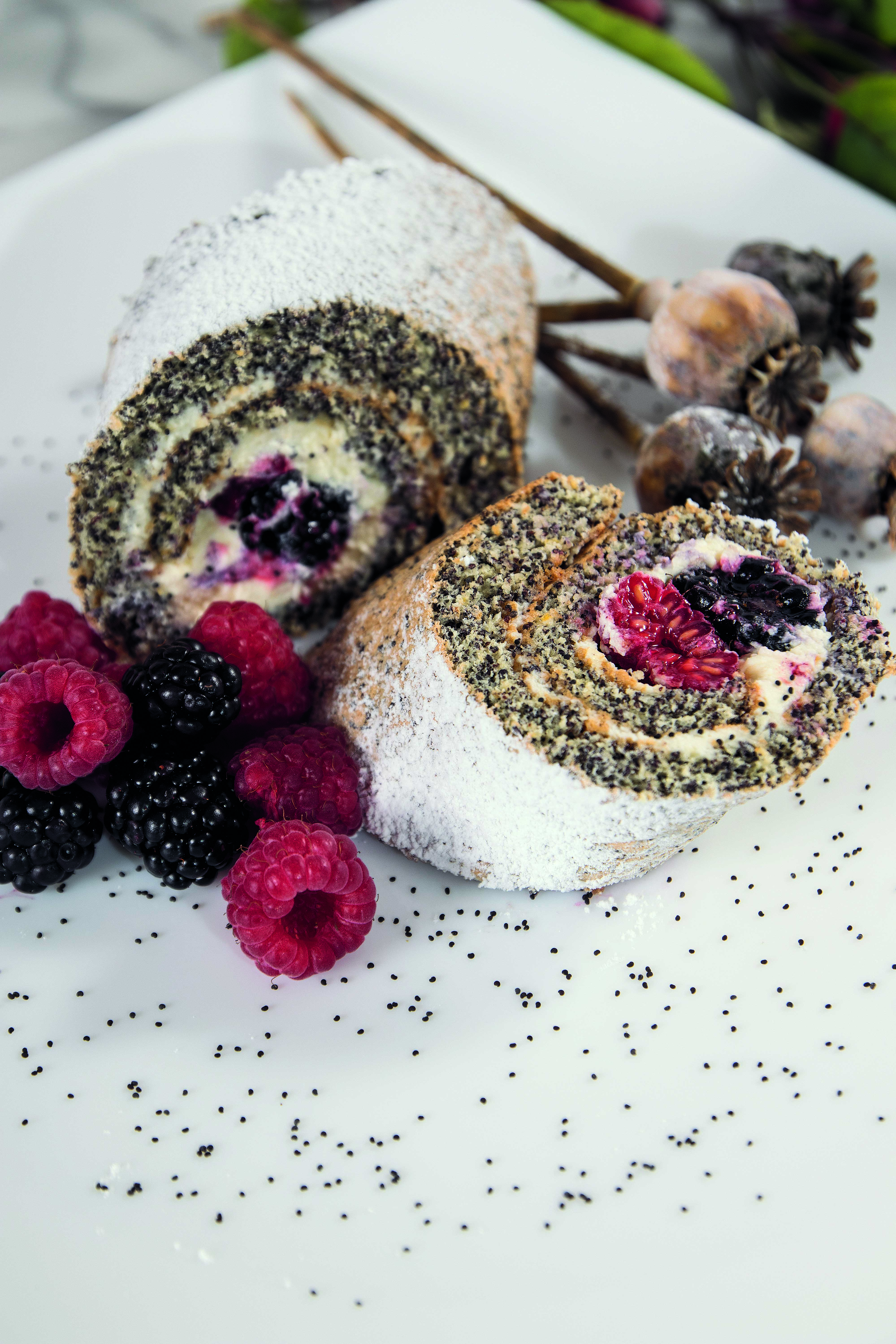 Mit Hilfe des Backpapiers wieder einrollen und auf einem Gitter auskühlen lassen