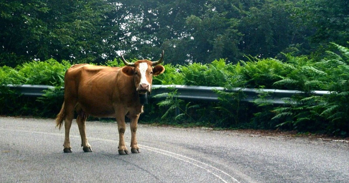 Kuh auf Fahrbahn: Radfahrer prallt gegen Betonsockel